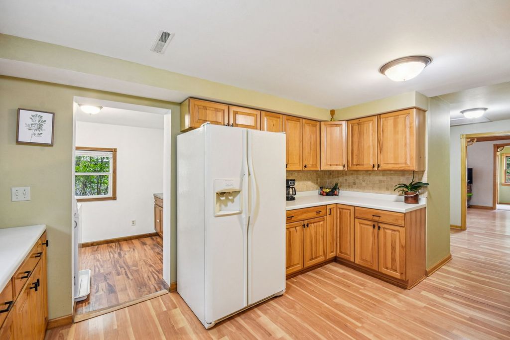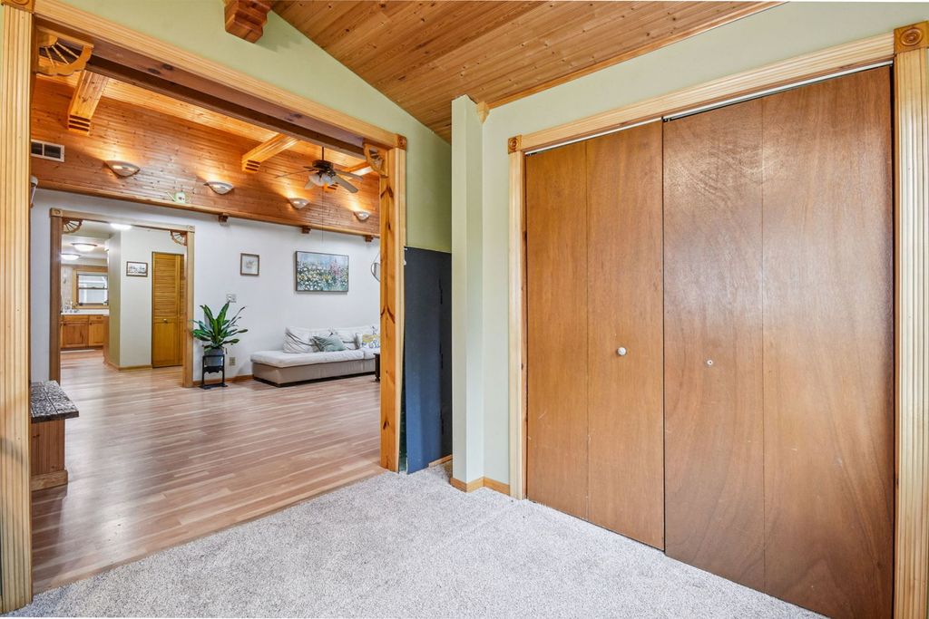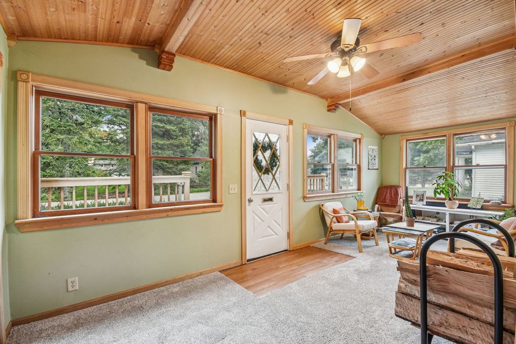 This inviting 3-bedroom, 1-bath ranch offers the perfect blend of comfort, charm, and functionality. As you arrive, you're welcomed by a sun-drenched front sunroom, a delightful space that greets you with warmth and sets the tone for the rest of the home. Inside, the spacious family room features vaulted, cedar-lined ceilings with rustic beams and a cozy fireplace, creating a stunning focal point and an ideal space for gatherings. The updated kitchen offers modern touches and plenty of workspace for cooking and entertaining. With approximately 1,600 square feet of living space, this home combines open living areas with cozy nooks for relaxation. Nestled on a large lot, the property boasts an large backyard complete with a two-story shed for extra storage, brick patio, and a deck, perfect for outdoor entertaining, gardening, or simply enjoying the peaceful surroundings. Located just moments from Converse Park and Slocum Lake, you'll enjoy scenic views and the added benefit of lake rights that include access to a clubhouse, beach, playground, boat launch, and pier.