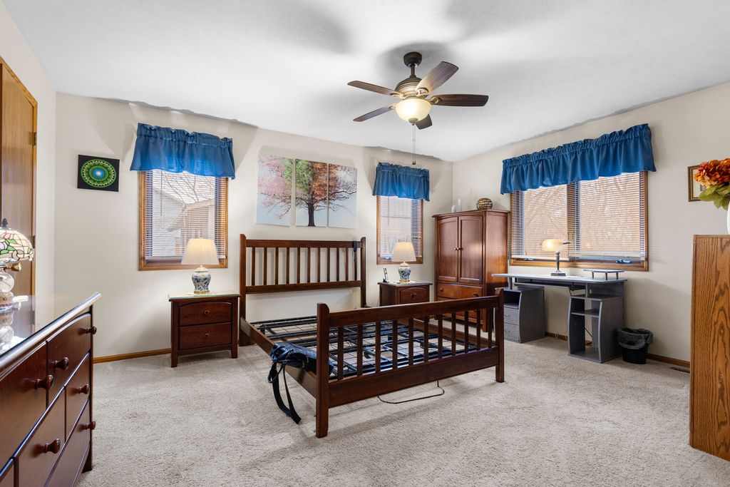 Charming and cozy 2-story home featuring 3 bedrooms and 3 full baths! Enjoy the warmth of a beautiful fireplace and the extra living space in the fully finished walk-out basement - perfect for entertaining or relaxing. This home offers plenty of storage throughout and a comfortable, inviting atmosphere you'll love coming home to. Don't miss this move-in ready gem!