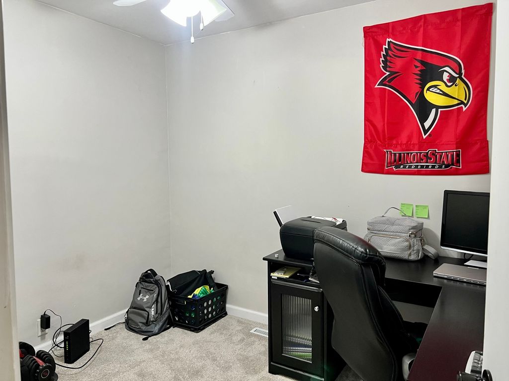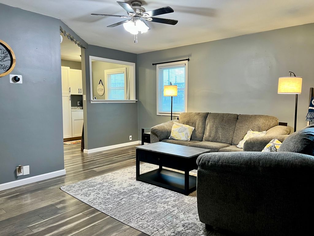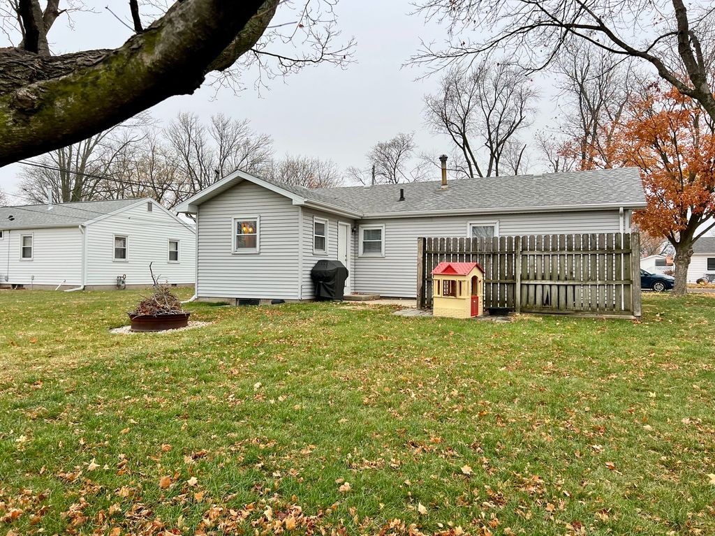 Discover this inviting home in the quiet town of Gibson City! This move-in ready gem features numerous updates throughout, including a beautifully remodeled bathroom, a brand-new front window and door (2024), fresh attic insulation (2025), and a security system for added peace of mind. The open-concept layout seamlessly connects the living room and kitchen, providing a spacious, comfortable setting for everyday living, dining, and entertaining. You'll find two bedrooms plus a versatile third room, perfect for a home office, playroom, or workout space. Outside, enjoy the private patio area overlooking the spacious backyard, ideal for gatherings, pets, or simply relaxing at the end of the day. This cozy, updated home is ready to welcome you!