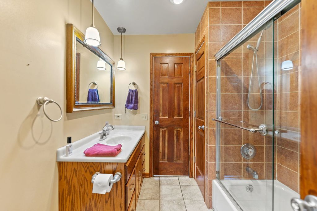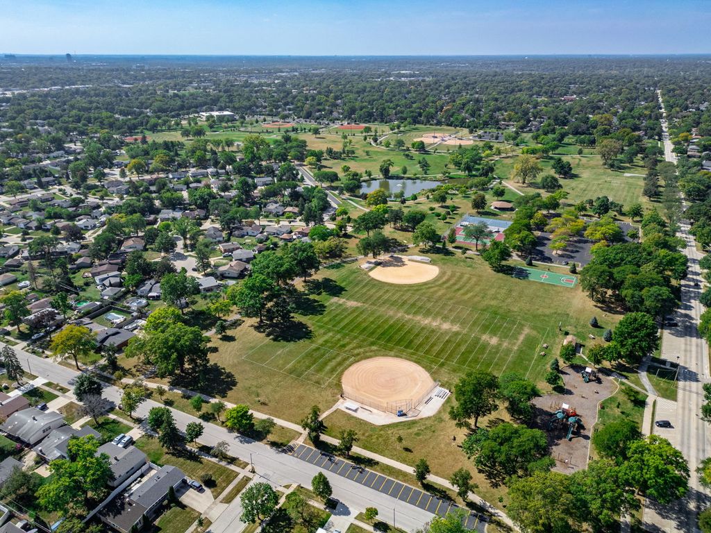 Welcome to this inviting 3 bed, 2 bath family home, ideally located on a quiet, tree-lined street in the heart of Lombard. Perfectly positioned on a premium lot, the home sits directly beside Madison Meadows Park-offering unmatched access to trails, playgrounds, athletic fields, and an 18-hole disc golf course. Step inside to a bright and open floor plan with flexible living space to suit a variety of lifestyles. The spacious eat-in kitchen is the heart of the home, featuring a skylight that fills the room with natural light throughout the day. Just off the kitchen is the main living area that is a perfect spot for relaxing or entertaining, complete with a cozy fireplace and a full bathroom nearby. Upstairs, you'll find three generously sized bedrooms, each with ample closet space, and a full bathroom conveniently located on the bedroom level. The finished basement offers even more room to spread out, with space for recreation, an additional storage room, laundry area, and crawl space. Basement floors and walls were refinished in 2022 with sealed and finished concrete for a fresh and clean look. Enjoy outdoor living in the large backyard, featuring an above-ground pool, ideal for summer fun and entertaining guests! Recent updates include: Roof, siding, and gutters (2019), AC unit (2021), New Quartz Counters and Sink in kitchen (2021), New iron entry gate (2025). Conveniently located near local shopping, dining, and all the amenities Lombard has to offer. Do not miss the opportunity to own this beautifully cared for home in one of Chicago's most sought-after suburbs, perfectly situated near parks, shopping, and more.