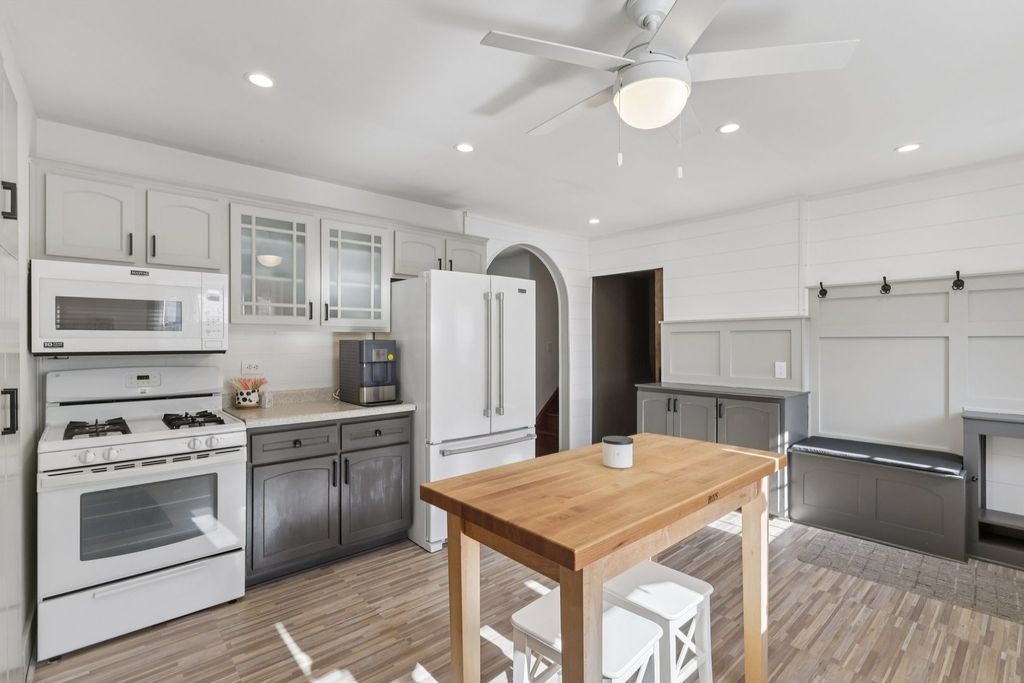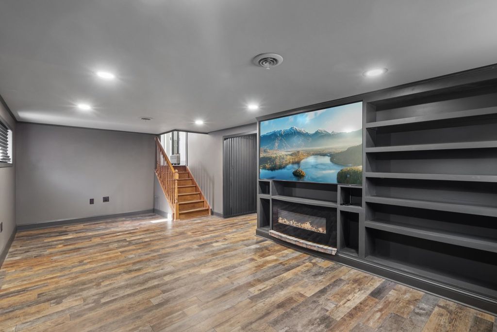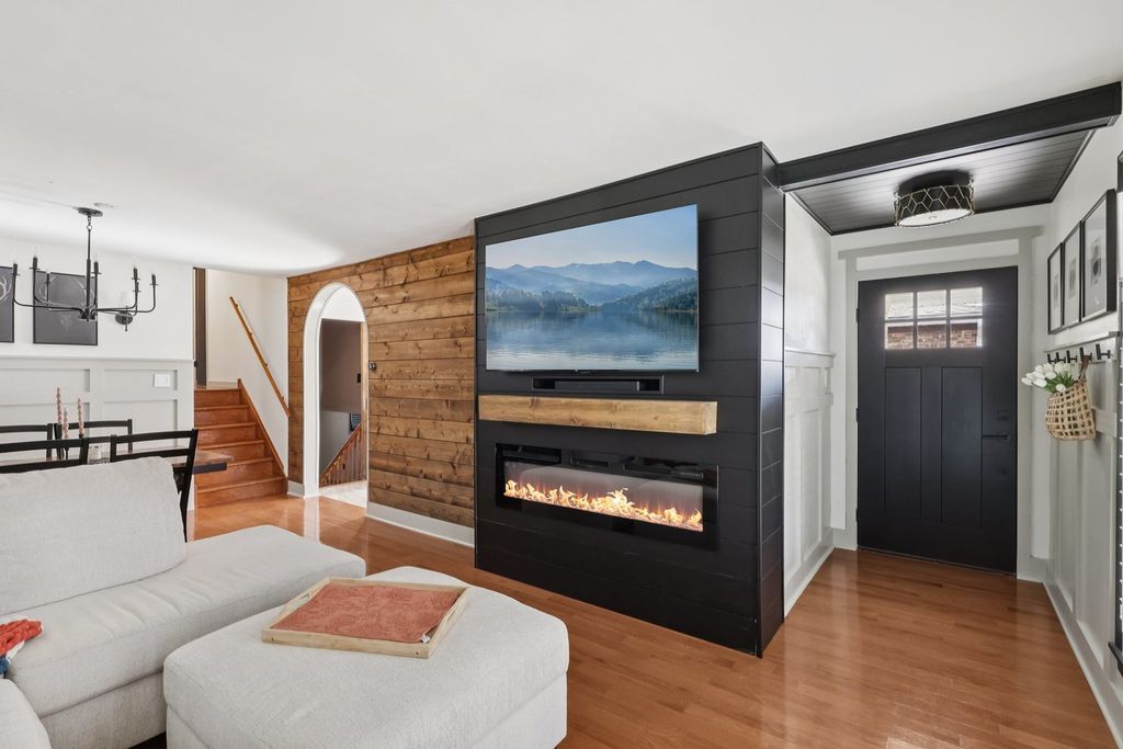 Discover this beautifully updated 3-bedroom, 2-bath home offering modern comfort and thoughtful custom touches throughout. Enjoy peace of mind with major improvements that include a full roof tear-off in 2014, new siding and fascia, a 2017 water heater, and windows with a lifetime warranty. The home features a spacious side driveway leading to a 2-car garage, along with both heating and air conditioning for year-round comfort. Inside, you'll love the custom pocket doors, built-in buffet and coffee bar, and a stunning entertainment center built to hold up to an 85-inch TV. The fully finished basement is enhanced with theater lighting, creating the perfect space for movie nights or gatherings. With a new dishwasher installed in 2024 and New landscaping, this home is truly move-in ready. Don't miss out, come this today.
