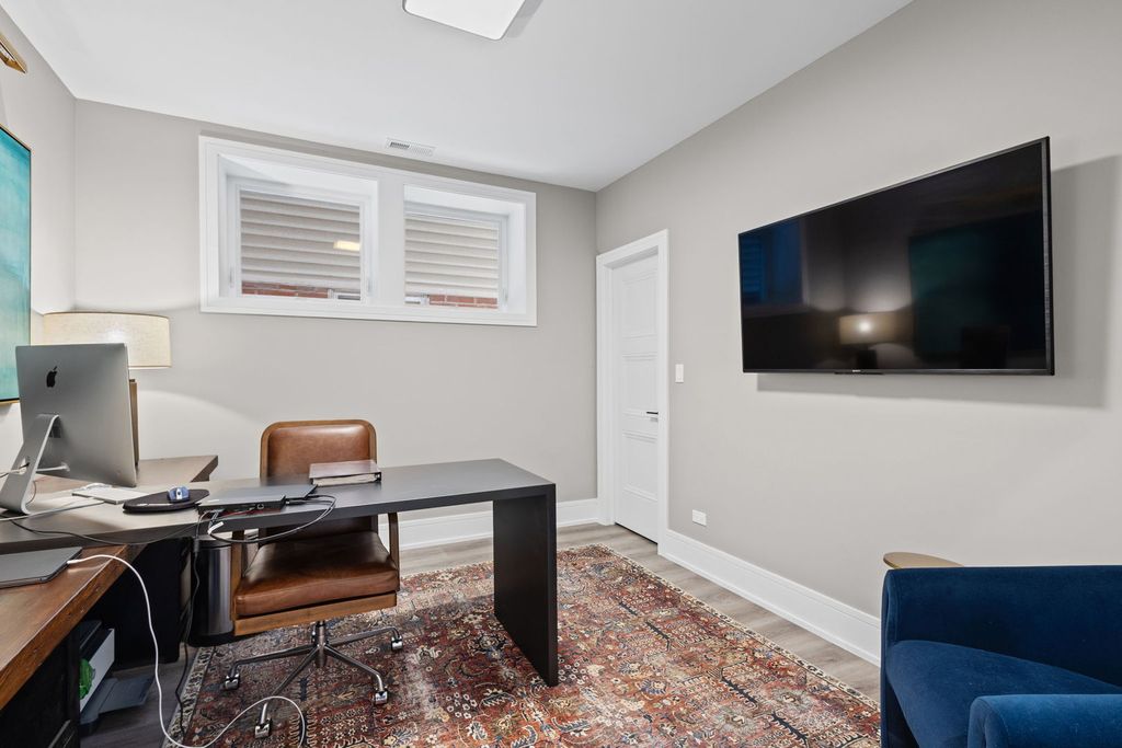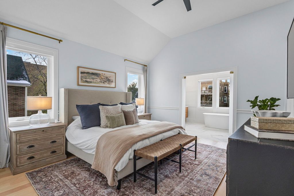 Stunning Nearly-New Construction in West Bucktown! Experience luxury city living in this exceptional five-bedroom, four full and two half-bath home, built just two years ago. Designed with impeccable craftsmanship and attention to every detail, this residence offers the perfect blend of modern style, comfort, and functionality. The main level showcases an open, light-filled floor plan with sophisticated designer finishes throughout - including custom cabinetry, a built-in range hood, quartz countertops, Thermador appliances, and a butler's pantry. Enjoy cozy evenings by one of the two fireplaces, or take in the view through the expansive back windows overlooking a beautifully landscaped yard and a two-car garage topped with a roof deck. Upstairs, you'll find three spacious ensuite bedrooms, each with its own luxurious bath. The primary suite features a spa-inspired bathroom with a soaking tub, separate glass shower, and double vanities - the perfect retreat after a long day. The lower level offers even more space to relax or entertain, with a wet bar, large recreation room, full bath, and two versatile bedrooms ideal for a home office, gym, or playroom. Located just steps from the 606 Trail and within walking distance to Bucktown and West Bucktown's vibrant restaurants, boutiques, nightlife, and public transit, this home truly has it all - luxury, location, and lifestyle.