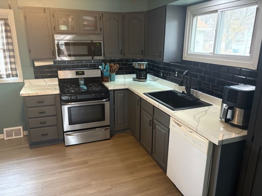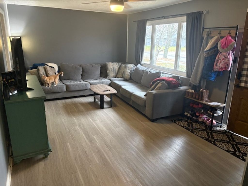 Very nice ranch home located on a quiet street with wonderful neighbors! The full basement allows an additional 864 square feet which doubles the size of the home! The home is ready to move into and has many updates that have been done, they include: Cedar siding with tinted stain; complete tear off roof and gutters replaced 2007; Furnace replaced 2015 (new blower motor 2025); CAC approx 7 years new; Laminate wood flooring in the LR, Hall and Kitchen 2020; Full bath remodeled 2019; Kitchen remodeled 2020; Appliances include refrigerator and dishwasher 2020, Over/range and microwave 2016, disposal 2018, dryer approx 10 years; Ceiling fans with lights in the LR, All BR's, and Kitchen. All bedrooms and hardwood flooring. The black pantry cabinet in the kitchen stays. The finished basement includes: half bath remodeled 2020; office or 4th bedroom with closet; large recreation area. The laundry area in the basement has a utility tub (the washing machine will not stay, the owner can have a used machine available if the buyer would like one). The yard is completely fenced and there is a shed with electric, fan and outlets behind the garage and another small shed attached to that. The backyard is completely fenced-in and there is a swing set that will stay, the Gazebo could stay if the buyer would like it. There is an oversized 1.5 car garage and also a concrete driveway. The ring doorbell is not included. There is an assumable FHA loan at $126,000 with an interest rate of 2.75.