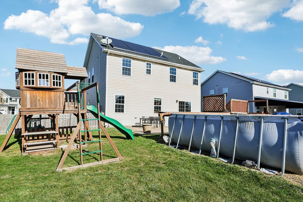 Discover this fantastic home featuring an open floor plan that is bright, inviting, and perfect for both everyday comfort and entertaining. At the front of the home, a versatile flex room offers endless possibilities - ideal as a dining room, home office, or formal living area. The spacious eat-in kitchen boasts S/S appliances, large island, an abundance of storage, and generous counter space. Adjacent is the family room that flows seamlessly from your kitchen and a conveniently located powder room rounds out this floor. Upstairs, you'll find four comfortable bedrooms and two full baths. The primary suite includes an ensuite bathroom with dual sinks and shower, and every bedroom offers generous closet space. The finished basement offers an additional full bath and expands your living space, perfect for your next home gym, game room or entertaining needs. The south facing backyard is flooded with natural light and features a stamped concrete patio with a refreshing pool that's ready for endless memories and warm-weather enjoyment. Schedule your showing today and fall in love with your new home!