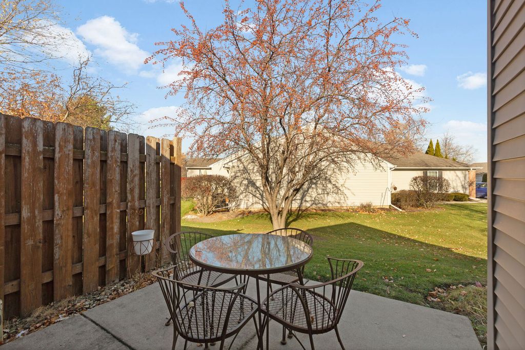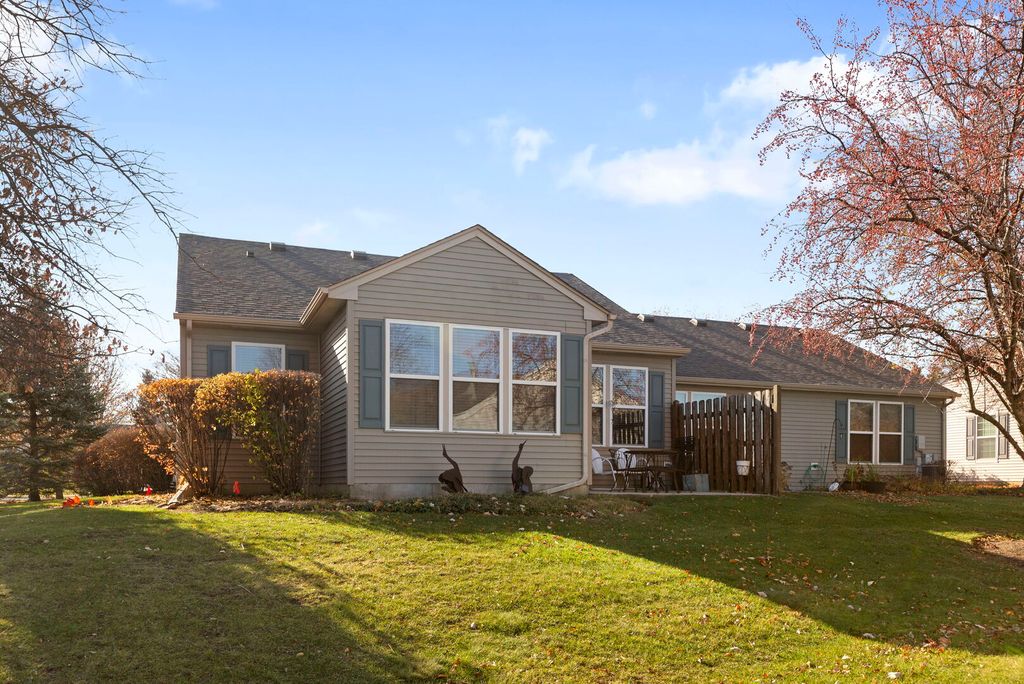 Welcome to Bradford Place, an over 55 adult community! This beautifully updated ranch style end unit boasts 2 bedrooms, plus a den and 2 full baths. The inviting porch and foyer lead to the living room with a vaulted ceiling. The dining room is a generous size and ideal for entertaining. The kitchen offers plenty of storage and an eating area next to a sunny window. The laundry room connects to the 2 car garage which includes 2 built-in storage closets! The primary bedroom features it's own bathroom with a shower and well-designed walk-in closet. There is also a full bath in the hallway which includes a tub. Adjacent to the hallway is a second bedroom as well as a den/office which leads out to the private patio and greenspace. Surrounded by mature trees and professional landscaping, this quiet, low maintenance community is waiting for you! Many new improvements highlight this home and include: Newer roof, furnace, a/c, water heater, flooring, kitchen appliances and more! Move right in to this well cared for home!
