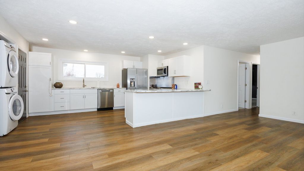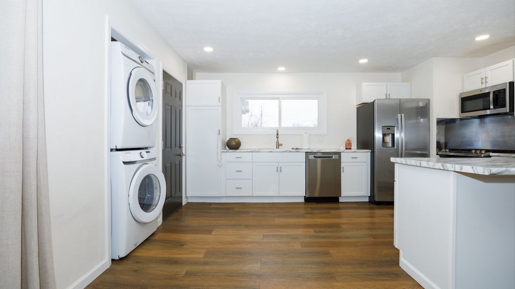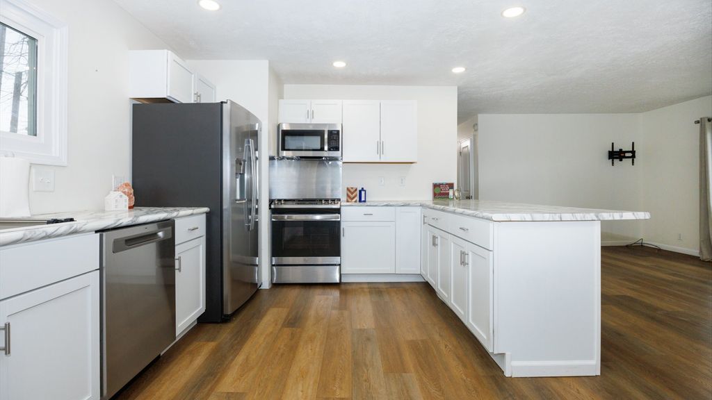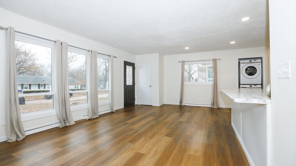 Welcome to this beautifully maintained, move-in-ready ranch in a central location. From the moment you arrive, you'll notice how effortlessly welcoming this space feels. It is clean, stylish, and thoughtfully designed. Inside, the home offers three comfortable bedrooms, one and a half bathrooms, and a convenient layout. The large kitchen offers space for casual meals and for entertaining guests. The extra-deep, one-car garage could be used as a flex space or for parking with additional room for storage. Originally taken down to the studs and fully renovated in October 2022, this home has been carefully maintained since. Updates include the roof, kitchen, baths, flooring, siding, garage door, lighting, trim, doors, appliances, and paint, all in 2022. This is one you'll want to see in person!