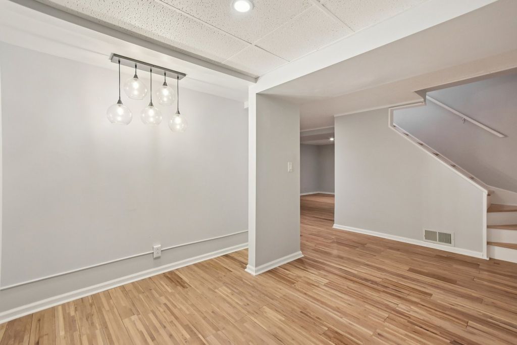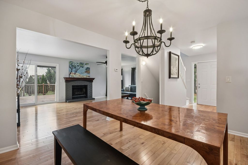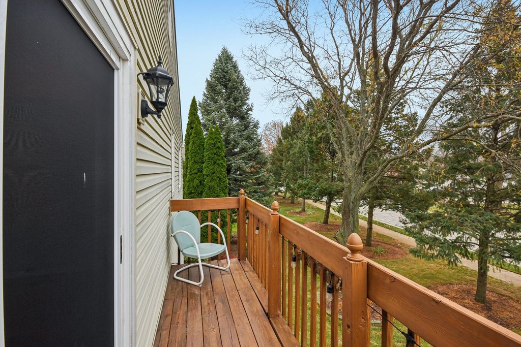We are thrilled to present a meticulously maintained, pristine end-unit townhome that offers a fresh and highly desirable aesthetic. This property is move-in ready and boasts several significant upgrades that enhance both its functionality and appeal. Key interior features include a customized kitchen, updated in 2025, which showcases custom cabinetry and elegant granite countertops. The master bathroom, updated in 2024, also features custom finishes, contributing to the luxurious feel of the home. The customized master suite is a true retreat, offering vaulted ceilings, a spacious walk-in closet, and a private balcony perfect for enjoying your morning coffee. The main level provides distinct living and dining areas, complete with a cozy fireplace. Hardwood flooring extends throughout the home, adding to the home's sophisticated charm, and new stairs both upper and lower. Additional living space is found in the fully finished basement, which features durable engineered hardwood flooring. For outdoor enjoyment, an expansive, private deck offers an ideal setting for entertaining or relaxation. The roof and gutters were also replaced in 2021, ensuring the home's structural integrity and minimizing future maintenance concerns.