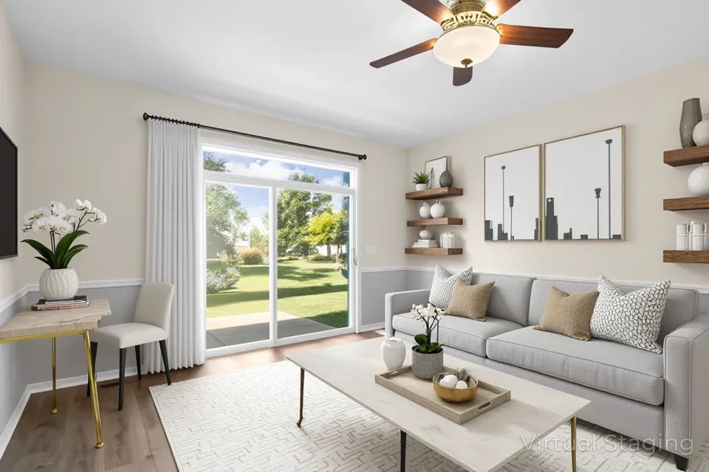 Impeccably maintained 2 Bed 2 Bath ranch in the highly desirable Adult 55+ Community of Carillon North. Spacious sun-drenched kitchen features 42" maple cabinets, pass through window to living space, plenty of countertops and large table space with slider leading to front patio. All NEW stainless steel kitchen appliances in 2024. Gorgeous new wood laminate floors flow throughout living room/dining room and guest bedroom. Enjoy the crisp fall weather in the rear patio with serene nature views. Large primary suite with 2 large closets and accessible walk in tub. Convenient in unit laundry w/ newer washer and dryer. Furnace and A/C less than 3 years old. Enjoy everything that Carillon North community offers including clubhouse, which features two large meeting/gathering rooms, a library room, an exercise/workout room, an indoor pool and indoor hot tub. Plenty of planned community events to enjoy year round in addition to pickle ball/tennis courts, walking trails and the Grayslake golf course. All with the convenience of the HOA maintaining the exterior upkeep including snow removal and lawn care.