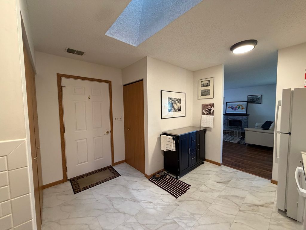 Welcome to Cottage Acres, a desirable 55+ community! You'll love this updated 2-bedroom, 1.5-bath unit with an attached 1-car garage. The bright kitchen features a skylight, quartz countertops, appliances and a spacious pantry. Enjoy the convenience of a main-level laundry closet, newer mechanicals and flooring throughout. Outside through the new sliding patio door you can relax on your patio or on the covered front porch. Lawn care and snow removal are included, so you can simply move in and enjoy this wonderful community! Sold as is.