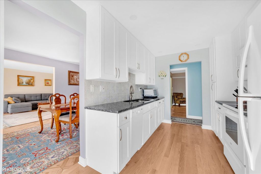 Welcome to this beautifully remodeled condo in the desirable Barcelona condominium complex, just steps away from OLD ORCHARD SHOPPING CENTER! Rarely available top-floor corner unit with southern exposure and some view of the Downtown Chicago Skyline. Oak hardwood floors, freshly painted. New kitchen, appliances & granite countertop. Spacious front walk-in closet. The spacious living room boasts separate sliding balcony doors. Both bedrooms with walk-in closets. All custom doors. New: a/c, heater and all windows (2023). Well-maintained elevator building with laundry, party room, outdoor swimming pool and heated one-car garage. Outside, the property impresses with professional landscaping and outdoor lighting. Experience the best of Skokie living with all these features and the sense of community offered by this lovely home.