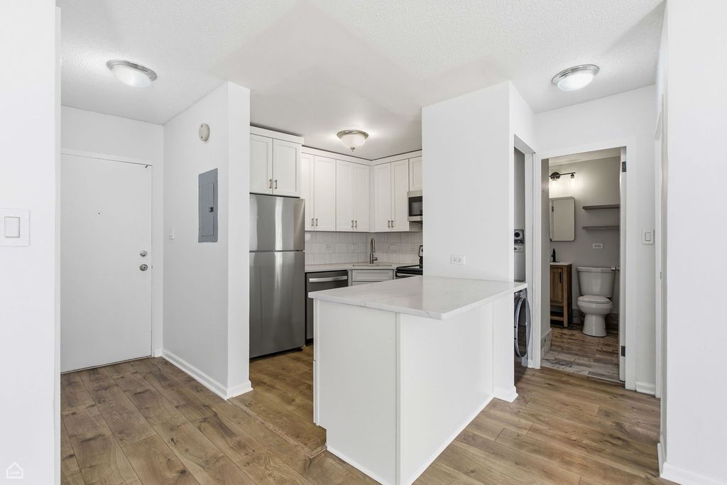 Beautifully updated 1bed/1bath condo in coveted 2930 N Sheridan! Immediately as you walk in, you will notice the Gorgeous and Open Kitchen (2023) - featuring Quartz Countertops, Stainless Steel Appliances, White Cabinets, charming Backsplash and Open Breakfast Bar. New Wood Flooring throughout (2022), New Bathroom with Walk In Shower (2023). In-Unit Laundry! Tons of Closet Space! 2930 N Sheridan features a fitness center, party room and a gorgeous rooftop deck with views of the Skyline and Lake. Additional storage included with the unit and rental parking available. Prime location where Lincoln Park meets East Lakeview. Just a short walk to Lake Michigan, near Diversey Harbor, the Driving Range, Parks, Dining and Shopping, CTA transportation, Grocery Stores, etc! Don't miss out! Low HOA's!