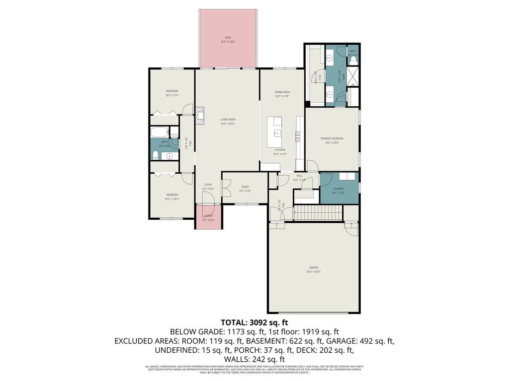 Beautiful brick ranch built in 2019 and impeccably maintained. Fresh paint and an open concept layout create a bright and welcoming feel the moment you enter. The modern kitchen features white cabinetry, a center island breakfast bar, quartz counters, stainless steel appliances, pantry, and luxury vinyl plank flooring throughout the main level. The primary suite includes a massive walk-in closet, dual sinks, and a custom walk-in shower. Secondary bedrooms are thoughtfully separated from the primary suite. The finished basement offers a huge recreation room, a fourth bedroom, a luxury bath, and an oversized storage room perfect for a workshop. Complete with a fenced yard and deck, this spotless newer home is truly move-in ready.