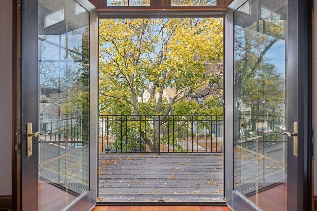 Welcome to this freshly updated stunning single-family home! Located in the prime Roscoe Village /Lakeview/Southport Corridor area. This solid brick and limestone residence features custom craftsmanship, abundant natural light, and an exceptional open floor plan designed for modern living and entertaining. Step inside to radiant heated floors, 9ft+ ceilings and solid American Cherry hardwood throughout, creating a warm and inviting atmosphere. The bright and spacious living room flows into the chef's kitchen and open concept dining area, anchored by a limestone fireplace and oversized French doors leading to a large private patio. This amazing kitchen is equipped with a Viking range, SubZero refrigerator and freezer, Dacor warming drawer, Black Pearl granite leathered countertops, solid mahogany cabinetry, and a generous pantry.The second floor offers a luxurious primary suite with dramatic 12' cathedral ceilings, skylights, a private balcony, and a spa-style bath featuring dual vanities, jet tub, and separate shower. Two additional well-sized bedrooms and a full bath complete this level. The third floor provides a flexible multi-use space-ideal for an office, family room, exercise room, guest suite, or playroom-featuring skylights, high-end wood ceilings, and its own balcony with city views.The fully finished lower level includes a large recreation/media room, gym or play area, fourth bedroom, slate-tiled hallway, full bath, and a cedar sauna. Ample storage is available throughout the home. Outdoor living includes a welcoming front porch, three balconies, a brick paver patio, and a winding exterior staircase connecting each level-offering numerous options for enjoying your own private urban retreat. A rare find is the finished living area above the 2-car garage, complete with wet bar and full bathroom, providing excellent flexibility for guests, an office, studio, or extended-stay accommodations. Home is completely wired for Internet, Media, Speakers, & Alarm System. Just minutes from the Paulina Brown Line, top-rated neighborhood schools, and the shopping, dining, and amenities of Southport Corridor and Roscoe Village, this home offers exceptional space, quality finishes, and outstanding walkability in one of Chicago's most desirable North Side locations.