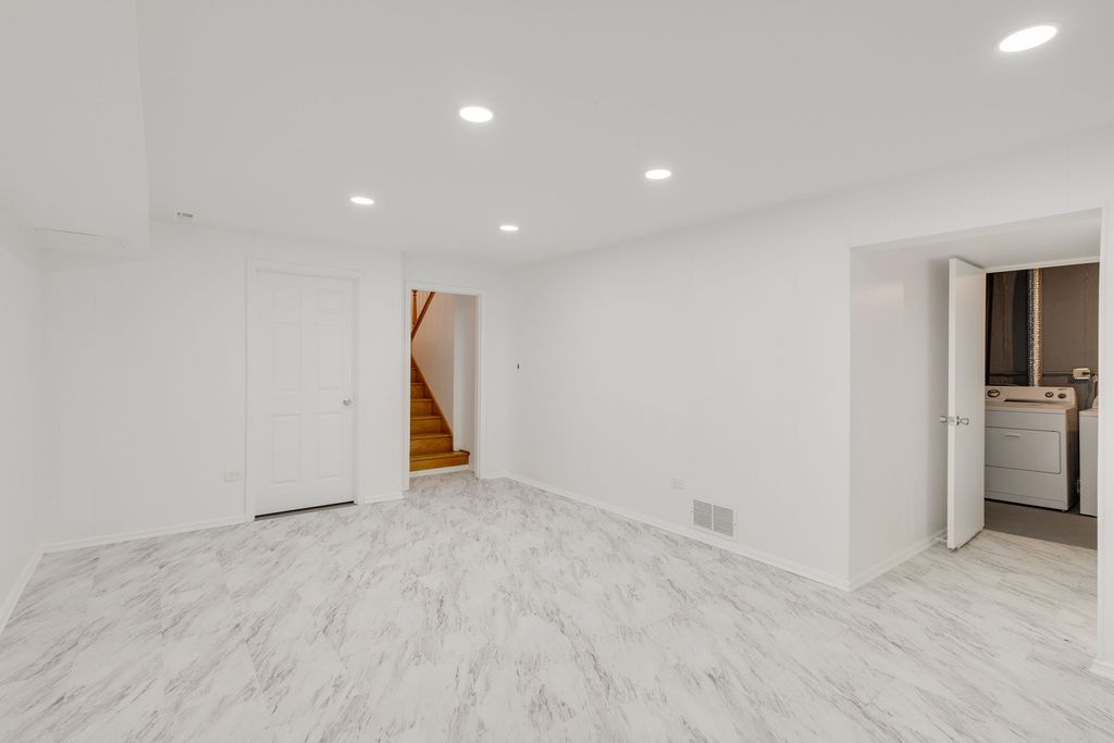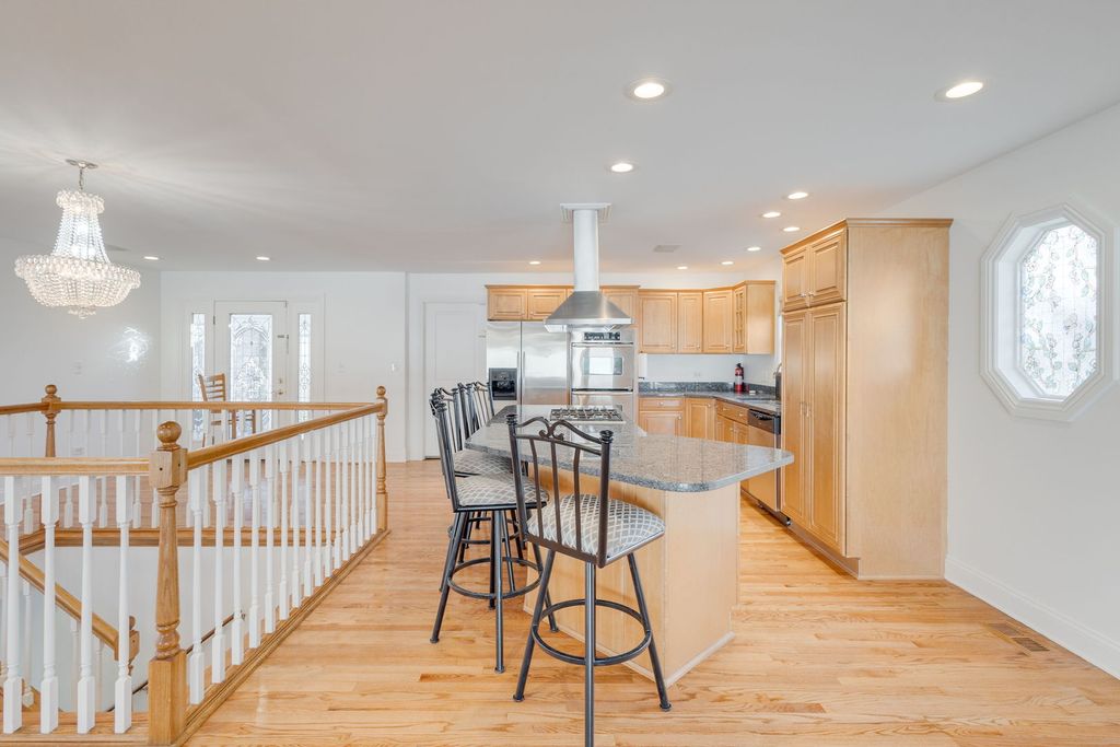 This home is a homeowner's dream, with an open floor plan. It is gorgeous and has been beautifully updated with upscale finishes. Elegance throughout. As you approach the house you are welcomed by the stunningly beautiful custom glass door with glass side light panels on either side. Once you enter the home, beauty abounds. This attractive well maintained home offers 3 bedrooms and 3 full bathrooms with possible 4th bedroom on the lower level. The open floor plan is highlighted by a centrally located crystal chandelier and refinished hardwood floors in the main living area. This home is accentuated by a 2-car attached garage with a driveway that can accommodate 4 vehicles. A stained glass window adorns the dining area. The kitchen cabinets are custom and of high quality with fold-out spice racks. The countertops are granite; stainless steel appliances; a new cooktop set in the midst of a granite covered, five-stool breakfast island bar. The living room/dining room boast a wood burning fireplace with a gas starter. The open floor plan provides ample space for a home office. There is direct access to the fenced-in backyard, featuring a lovely concrete patio; patio furniture; gym/swing set; shed and solar lights. Gleaming magnificent hardwood flooring throughout the open floor plan area. All the bedrooms have new gorgeous vinyl flooring and exquisite designer fans and fixtures. The spacious master bedroom is an ensuite with generous closet space. As you descend the lovely hardwood stairs leading to the charming lower level, you are invited to a bright light filled, almost 9ft. ceiling boasting recessed lighting; a huge custom closet that extends one end of the room to the other end; beautiful new flooring and a gorgeous recently updated bathroom. Tons of storage space. Also, huge space for entertaining and a bedroom-depending on your desire. New roof, furnace, cooktop, dishwasher, sump pump. Home has a water softener, copper piping, and freshly painted interior.