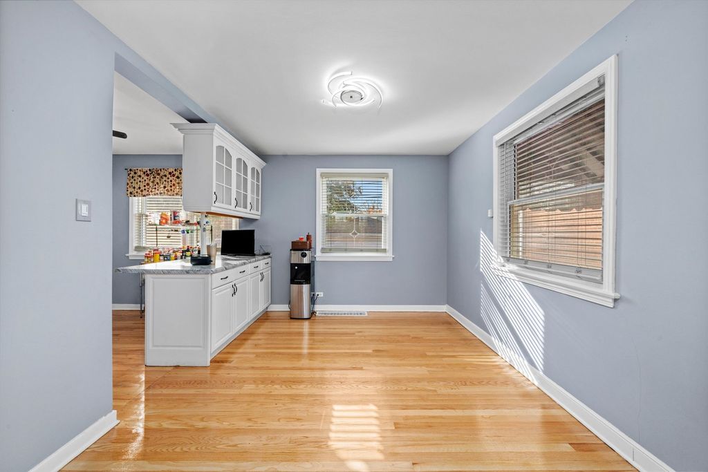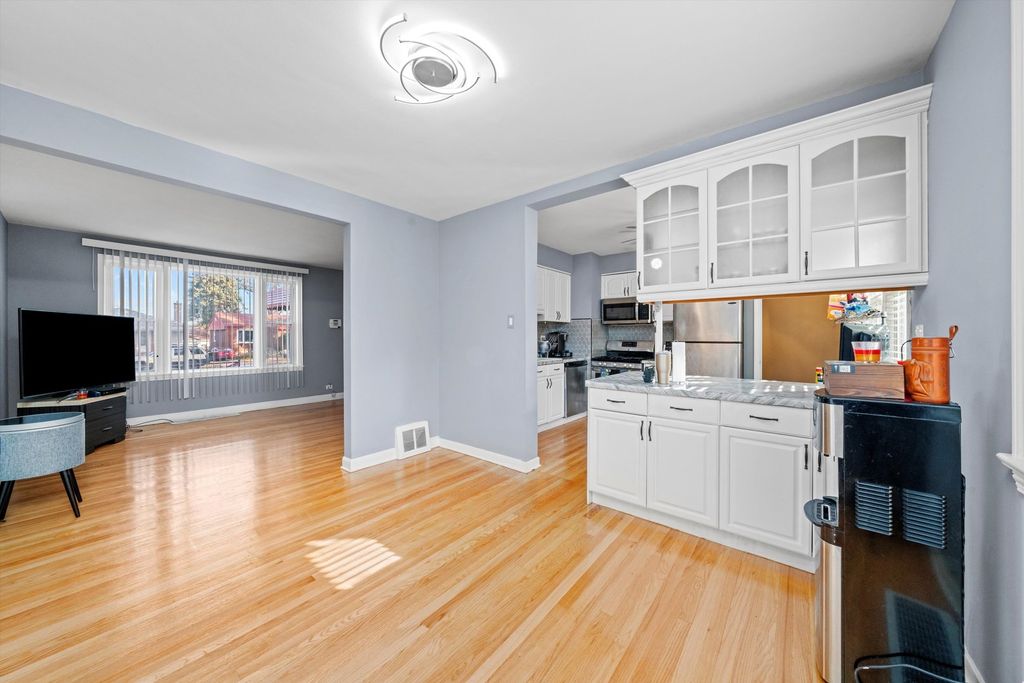 Welcome to this beautifully maintained brick raised ranch in the highly sought-after Village of Westchester. With 2 spacious bedrooms and 2 full bathrooms, this home presents the perfect blend of comfort, style, and smart updates. Step into an open and inviting living space where gleaming hardwood floors flow through the main level, setting a warm and modern tone from the moment you enter. At the heart of the home is a bright, updated kitchen featuring crisp white cabinetry, stainless-steel appliances, a convenient breakfast bar, marble-look countertops, and a chic hexagon-tile backsplash - a modern chef's dream, ideal for entertaining or family gatherings. Both bedrooms are generously sized, and the updated bathrooms bring contemporary finishes that enhance everyday living. But the surprise doesn't end with the main level. Venture down to the fully finished basement, and you'll find a dedicated theatre/game room - the ultimate space for movie nights, playtime, or hosting friends. With a full bath down here as well, guests feel perfectly accommodated. Ample storage and utility areas make this level genuinely functional and fun. Outside, enjoy suburban convenience with a location that puts you close to parks, tennis courts, playgrounds, shopping, dining, and major transportation routes. With a move-in-ready layout, thoughtful updates, and flexible spaces both above and below, this home offers an exceptional opportunity. Don't miss your chance to make this one your own - comfort, convenience, and style all wrapped into one exceptional address. Schedule your showing today!