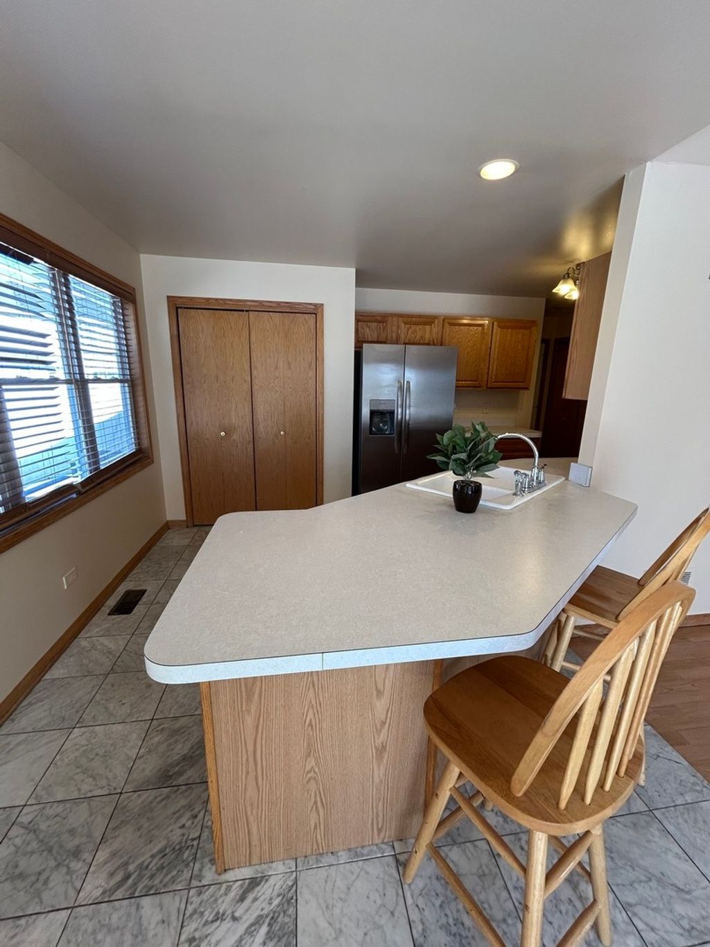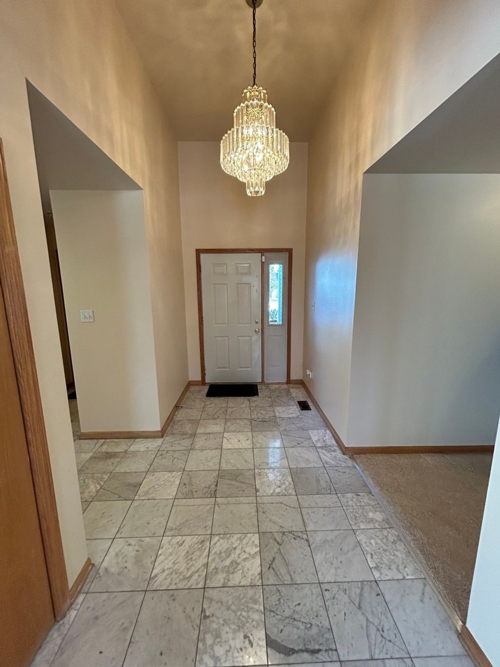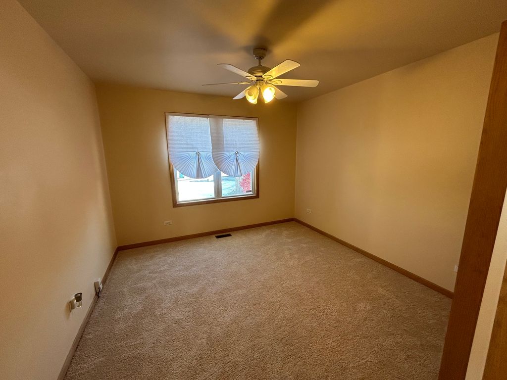 Charming 3 bedroom 2 bath ranch on a quiet cul-de-sac is move in ready. Recent updates include fresh paint, new carpeting throughout and new stainless appliances (warranty included), and central unit installed in 2023. Galley kitchen has marble floors, a large pantry, and opens to attached dining room and living room that features cathedral ceiling and cozy fireplace. There is a sliding door off the dining room that opens to a 48 x 16 deck, and big back yard ideal for entertaining. Other features include a spacious master bedroom with tray ceiling, full private bath with jacuzzi tub, and walk in closet. The partially finished basement offers even more space, with a family room, office area, and a bonus room that could be playroom or exercise area. This home has it all. Comfort, style and convenience. Don't wait to schedule your showing. Owner is a Licensed Realtor in Illinois.