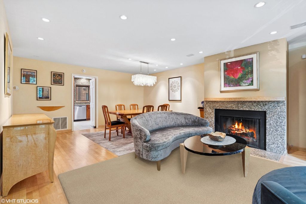 3 bed + den/2.5 bath townhome with 2 private outdoor spaces and attached heated 1-car garage in the heart of Gold Coast's highly desirable Sutton Place community! Onyx tile entryway foyer leads into this spacious 4-story townhome with hardwood flooring and tons of closet space throughout. Newer kitchen and appliances with stone countertops opens into the main floor dining and family room complete with gas fireplace and south facing Juliet balcony. Wall of south facing windows spanning all 4 stories allows for natural light throughout the day! Entire top-floor primary suite includes a full-width private roofdeck terrace with Trex decking, cathedral ceilings, a second wood burning fireplace, and a huge walk-in closet and updated en-suite bathroom. Custom built-ins, open shelving and millwork throughout. First floor family room leads out to private enclosed courtyard! Full sized side-by-side washer/dryer. Professionally managed 50-unit pet-friendly HOA with private gated drive includes 24/7 on-site security, professional landscaping and snow removal. Complex is fully owner occupied in a truly unbeatable location. Building is all brick/ masonry construction. Steps to Michigan Ave, Old Town, lake path, North Avenue and Oak Street Beaches, Red Line, Equinox, everything Gold Coast has to offer!