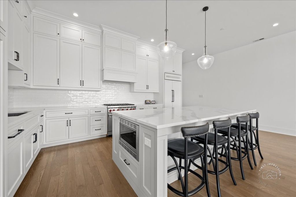 In a building of the best, Penthouse 3 stands above the rest. Welcome to One95 in Elmhurst, a 20-unit residential building just steps from Downtown Elmhurst and the Metra Station. Penthouse 3, a 3-bedroom, 2.5-bath condo, is one of only two penthouse units, offering stunning east-facing views of the Chicago skyline. As you step inside, the great room welcomes you with an inviting space intimate enough for everyday living yet expansive enough for large gatherings, with a generous living area, dedicated dining space, and an enlarged kitchen island. From there, flow seamlessly onto your private open-air balcony, the perfect spot for morning coffee or evening drinks with the City skyline as your backdrop. A flexible den nearby adapts effortlessly as a work-from-home office or lounge area. The primary suite provides a serene retreat, featuring a spa-like bathroom with a large shower and soothing soaking tub. Bedrooms 2 and 3 share a thoughtfully designed Jack-and-Jill bath, balancing privacy and convenience. Nestled in downtown Elmhurst within the highly rated CUSD 205 school district, less than 20 miles from Chicago, this unit includes two heated garage parking spots, an interior storage room, and access to a dog run. Pet-friendly and thoughtfully designed, One95 blends style, comfort, and everyday convenience.