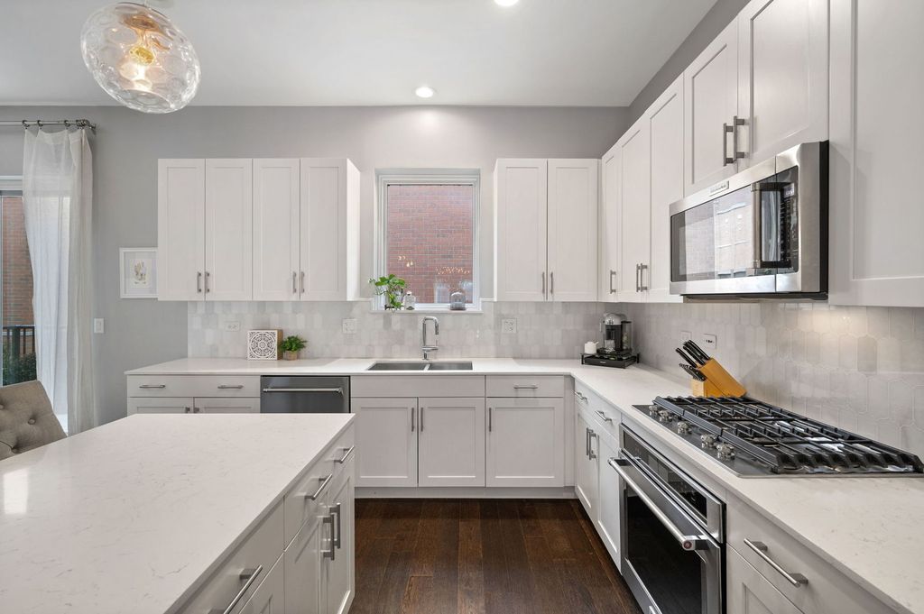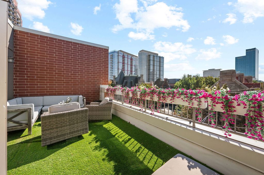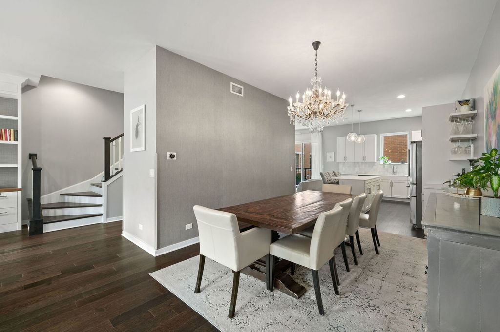 A beautifully appointed, extra-large town home in an exceptional South Loop location. This rare-to-market, sunny, four-story residence offers 4,050 square feet of thoughtfully designed, light-filled space, including 5 bedrooms and 4.5 bathrooms. Throughout the home - one of the largest in the complex - oversized windows, hardwood floors, high ceilings, and custom millwork complement the wide floor plan and create a seamless flow between living spaces. The main living room, spanning the entire width of the home, is flooded with southern light and features custom built-ins and one of two gas fireplaces found on this level. Passing through the large dining room, the home's kitchen has a perfect layout for both cooking and entertaining. Stone countertops with abundant cabinet space surround the central island with barstool seating and additional storage. High-end stainless steel appliances, a large pantry, a second fireplace and grilling balcony finish the space. Three of the home's bedrooms, including the primary, are found on the third level. The primary suite easily accommodates a king-sized bed, has a deep walk-in closet, and the adjoining primary bathroom has a truly spa quality wet room including multiple shower heads, a bench and separate soaking tub. The well sized second and third bedrooms on this level share a convenient bathroom with dual sinks and a linen closet. The top floor, multi-use, family room includes a custom wet bar, space for whatever suits your needs, and provides access to the private rooftop terrace with peaceful views overlooking the Historic Prairie District. An additional full bathroom and fourth bedroom also share this level. The fifth bedroom, which would also make a great office, is located off the foyer on the home's first floor. An attached two car garage with additional storage completes the home. Prairie Court is the South Loop's premier luxury townhome development. Located on a quiet, tree-lined street, this townhome offers unparalleled convenience. Enjoy close proximity to parks, coffee shops, restaurants/shopping, and the Museum Campus/Lakefront Trail. With easy access to the Loop, LSD, expressways, and trains, this location offers an effortless downtown lifestyle.