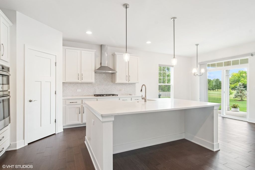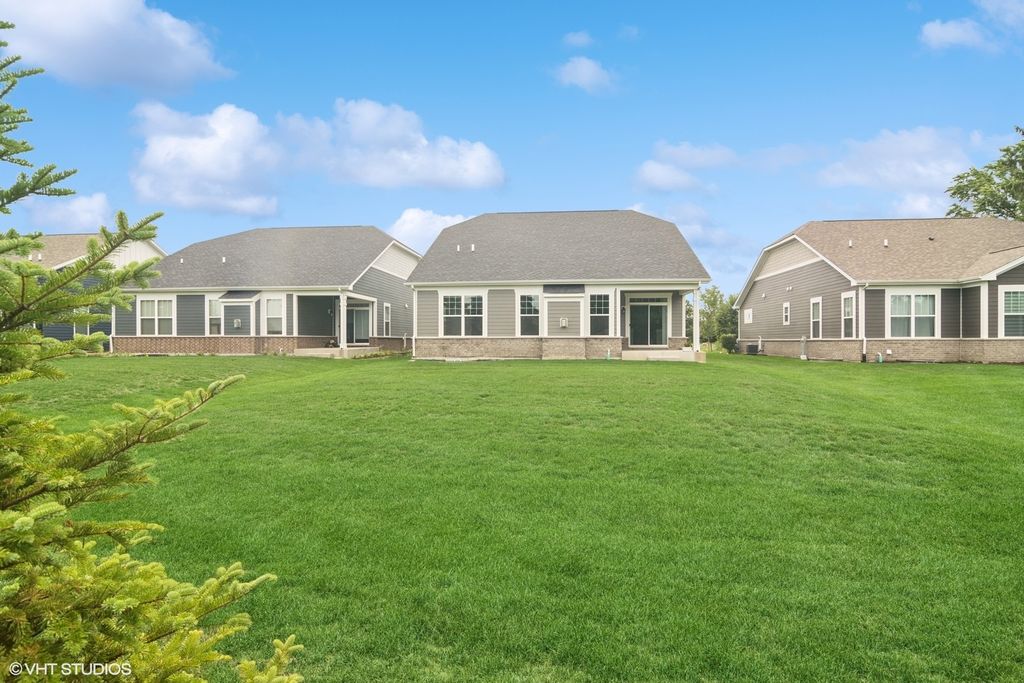 Welcome to this exceptional new construction ranch, perfectly positioned on the 5th fairway of Kemper Lakes Golf Course with sweeping views of the lush greens and tranquil water features. This custom-built home offers the ultimate in single-level living with 3 spacious bedrooms, elegant finishes, and a thoughtful floor plan designed for both comfort and style. From the moment you step inside, you'll notice the expansive windows that fill the home with natural light and frame the breathtaking golf course scenery. The open-concept design flows seamlessly from the bright living space into the chef's kitchen, where you'll find top-of-the-line stainless steel appliances, an oversized island, and abundant cabinetry-ideal for everyday living and entertaining alike. Adjacent to the dining area, a porch invites you to relax and unwind while taking in the peaceful views-whether you're enjoying a quiet morning coffee or entertaining guests in the evening. The serene primary suite offers a luxurious escape, complete with a large walk-in closet and a spa-inspired en-suite bath featuring double vanities, a soaking tub, separate walk-in shower, and private water closet. Two additional bedrooms offer flexibility for family, guests, or a dedicated office space. Downstairs, the 2,200 sq ft unfinished basement with high ceilings and rough-in plumbing presents endless opportunities-whether you're dreaming of a home gym, rec room, theater, or expanded living space. Located in the award-winning Stevenson High School District, this home combines luxury, convenience, and an unbeatable golf course setting. Enjoy modern living in a truly picturesque environment-this is a rare opportunity you won't want to miss.