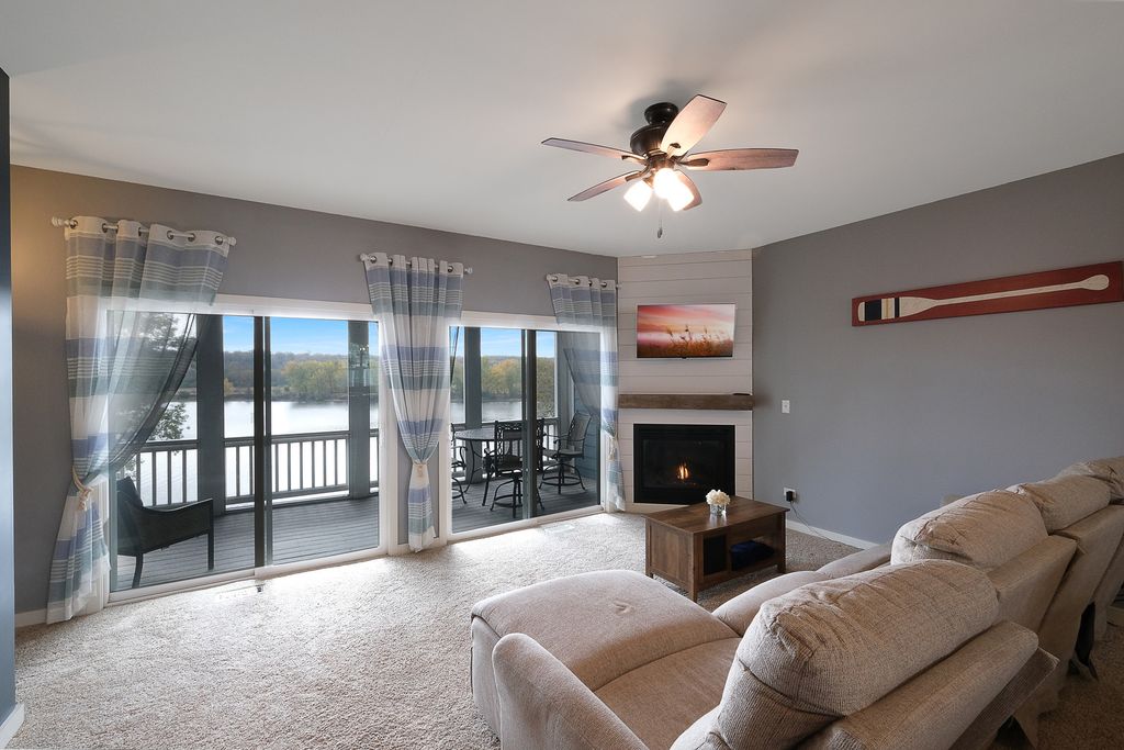 Wake up to peaceful river views and end each day with sunsets that shimmer across the Illinois River from your private balcony. This beautiful three-story townhome invites you to slow down, unwind, and savor life by the water. Every level of this home is designed to blend comfort with connection to nature, neighbors, and to the rhythms of resort-style living. Step onto one of the 3 outdoor spaces to sip your morning coffee, host friends for an evening beverage, or simply watch the boats drift by. Inside, you'll find two inviting bedrooms, two full baths, and two updated half baths, along with plenty of flexible living space for gathering or quiet relaxation. The kitchen is both stylish and functional, featuring stainless steel appliances, quartz countertops, breakfast bar seating, and nearby table area, while the cozy fireplace adds warmth to every season. A screened-in porch and covered patio make it easy to enjoy the outdoors year-round, and thoughtful details like a smart thermostat, 2nd floor laundry, and a two-car garage add to the convenience of everyday life. Located in the waterfront community of Heritage Harbor, you'll have access to outdoor pools, on-site restaurant, boat slips, an event venue (2026) and golf cart paths that make getting around easy and fun. Miles of walking and biking trails wind throughout the community, including access to our 5k harbor walk. Downtown Ottawa is just a few minutes away with its charming shops, cafes, and events! Here, every day feels like a getaway, and the river is always part of the view.