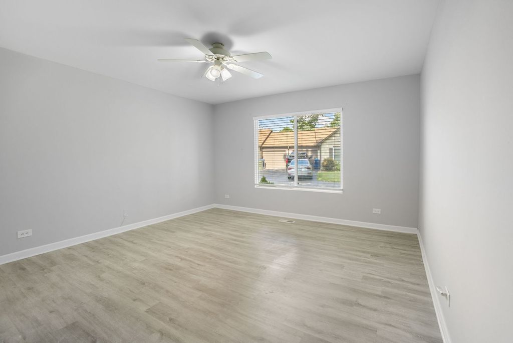 Experience the comfort and convenience of single-level living in this beautifully renovated end-unit ranch, perfectly situated in a peaceful Naperville neighborhood. The modern kitchen impresses with white shaker cabinetry, matte black countertops, sleek brass hardware, and generous storage and prep space. Luxury vinyl plank flooring runs seamlessly throughout, creating a clean and contemporary feel. Vaulted ceilings, skylights, and expansive sliding glass doors fill the spacious living room with natural light, leading to a private deck ideal for morning coffee or evening relaxation. A custom built-in entertainment center adds both style and function. The primary bedroom easily accommodates a king-size bed and offers excellent closet space. Additional features include in-unit laundry with stackable washer/dryer and an attached one-car garage. Low HOA fees cover exterior maintenance, including the roof, siding, lawn care, snow removal, and exterior insurance-for truly carefree living. Located in award-winning District 203 schools and just minutes from downtown Naperville, Metra, I-355, I-88, shopping, and parks. This MOVE-IN READY home delivers the perfect blend of style, comfort, and convenience.