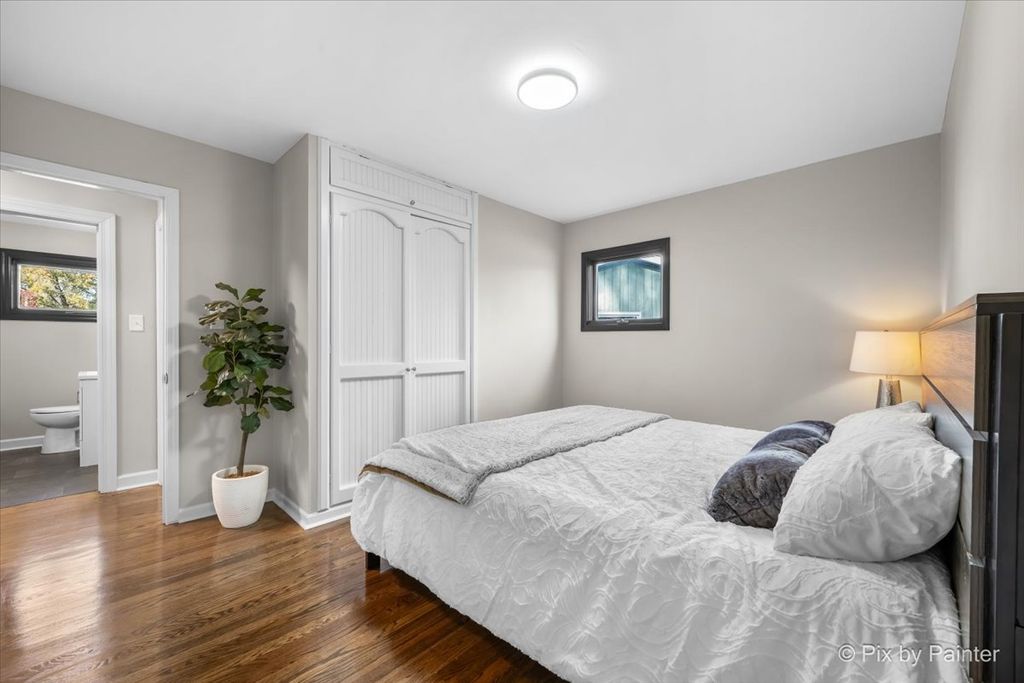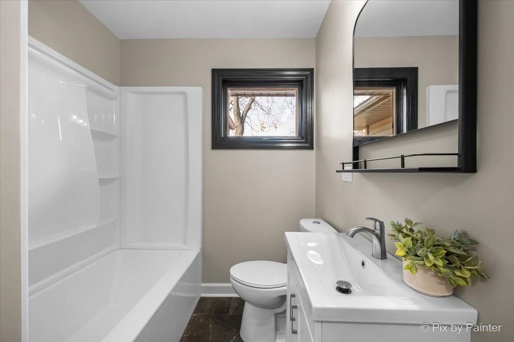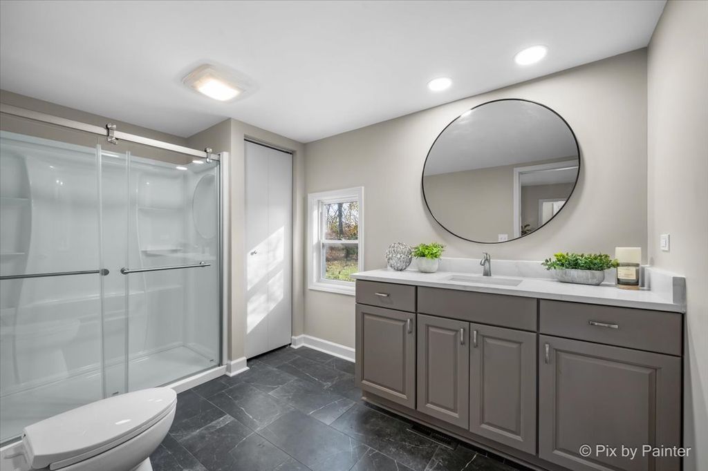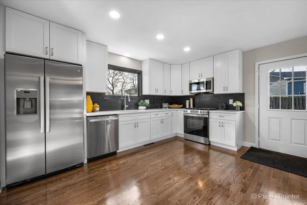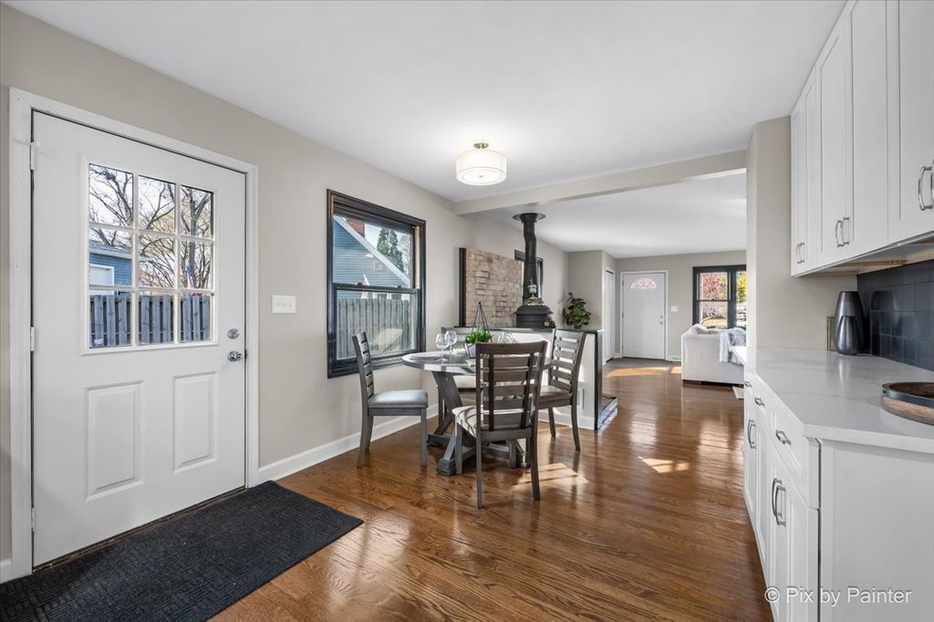 Welcome to 215 Sunset Terrace, a stylishly updated 3 bed, 2 bath ranch home with a finished basement perfectly situated on a quiet, tree lined cul-de-sac. Fabulous open concept layout with a stunning kitchen featuring new cabinetry, sleek quartz counters, ss appliances and gorgeous refinished hardwood flooring that extends throughout the home. Adjacent dining room and spacious living room with cozy wood burning stove and large windows that flood the space with natural light. Sizeable primary suite with spa-like ensuite full bath featuring walk-in shower and contemporary finishes. Completing the main level are two additional generous bedrooms, a second beautifully renovated full bath and convenient main level laundry room. The finished lower level offers additional living space with a large family room and bonus space that could be used as a 4th bedroom, home office or gym. New roof, furnace, cabinets/vanities, flooring, appliances, lighting and paint ensure years of low maintenance living. Generous fenced backyard with private patio, firepit area and mature landscaping that backs to the Prairie Trail for evening walks or weekend bike rides. Exceptional location tucked into a quiet community yet just blocks from downtown shopping/dining, parks, playgrounds, Three Oaks Recreational Area, Crystal Lake, the Metra - and top rated schools.