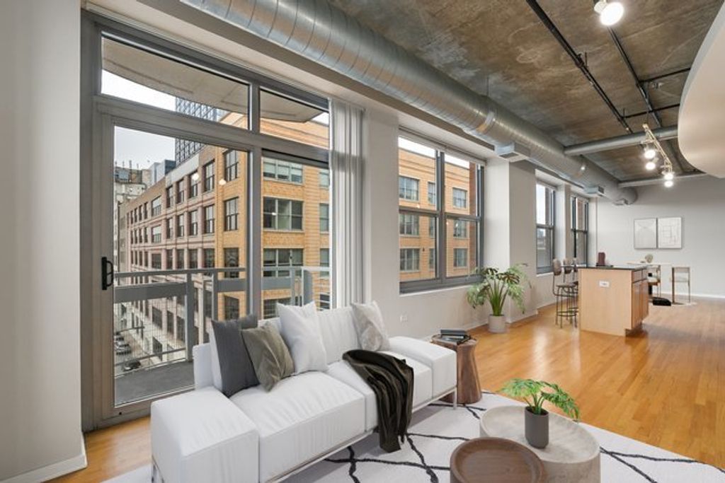 A stunning, light-filled corner unit awaits in a premier mid-rise residence in the heart of the West Loop! Designed for modern living, this condo features an open concept floor plan with high lofted ceilings, gleaming hardwoods and expansive windows that capture the southwest cityscape both day and night. Prepare meals with ease in the spacious kitchen offering 42 inch cabinets, granite counters, stainless steel appliances and a large center island. The adjacent dining area is perfect for hosting special meals with family and friends. Relax or entertain in the living room, anchored by a built-in fireplace, providing a perfect focal point for cozy evenings. At day's end, retreat to the generously-sized primary suite with a walk-in closet and private bath. A second bedroom, hall bath, convenient in-unit laundry and private balcony complete this move-in ready unit. One assigned parking space and storage locker are also included in the sale. Enjoy this full-amenity elevator building with 24-hour front desk/security, fitness center with cardio and weight rooms, business center, package delivery room, bike area, laundry services and a rooftop deck with panoramic city views! Unbeatable location, just blocks from UIC, Rush Hospital, Illinois Medical District, Blue Line, CTA bus line, dog parks, grocery stores, restaurants, expressways and all the West Loop has to offer. This is a pet friendly and investor friendly building! Book your tour today!