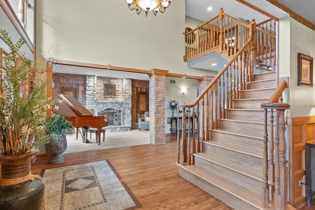 Step inside this extraordinary, CUSTOM solid brick home revealing intricate and meticulous craftsmanship. Incredibly spacious home boasts exceptional millwork, stone and brick accents and features 5 bedrooms and 5 full bathrooms! Gorgeous, classic architectural design that will transcend the ages. Alluring entryway with a stunning, dual staircase and elegant chandelier. Beautiful dining room offers custom wainscoting details, crown molding and tray ceilings. Elegant living room has a stone fireplace to add warmth to this space. Spectacular two-story great room with a wall to wall and floor to ceiling brick fireplace which is truly the show stopper in this space. This room also offers tons of windows for optimal retention of sunlight. Embrace the traditional style kitchen that includes plenty of cabinetry and counterspace, stainless steel appliances, a sizable island great for entertaining and a pantry closet. A cozy eat in area off the kitchen for extra seating and a sliding door to the magnificent patio. The main level also includes a potential 5th bedroom or related living opportunity, a full bathroom, and laundry area. A great feature of this home is the dual staircase, which provides two ways to access the upstairs, one from the great room and one from the foyer. On the second level you're greeted by a sprawling catwalk overlooking the two story great room and foyer. Unwind in the master retreat that offers a custom walk in closet and private ensuite with a dual vanity, whirlpool tub and separate shower. Three additional bedrooms on the second level and two full bathrooms PLUS a bonus space that can be used as an office, workout space, playroom and more. Full basement has soaring ceilings and is complete with a bar area, fireplace, full spa-like bathroom, potential media area, home gym, storage and more. Breathtaking grounds are the ultimate space to entertain and features a custom brick outdoor fireplace and expansive patio area. 3 car garage with a gas line for a heater. ROOF (2025) Furnace and Water Heater (2020). Incredible location close to shopping, dining and more. Lemont is the National Blue Ribbon School. Wonderful offering in this price point. Schedule your showing today! WATCH FULL LENGTH VIDEO!