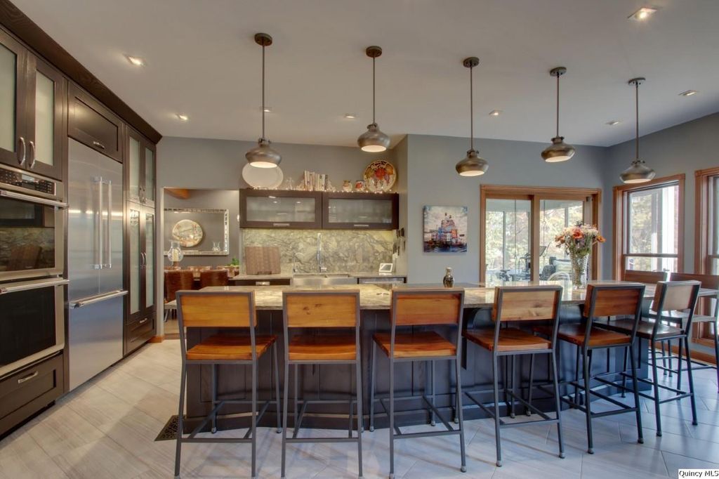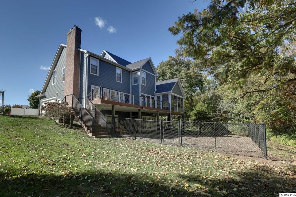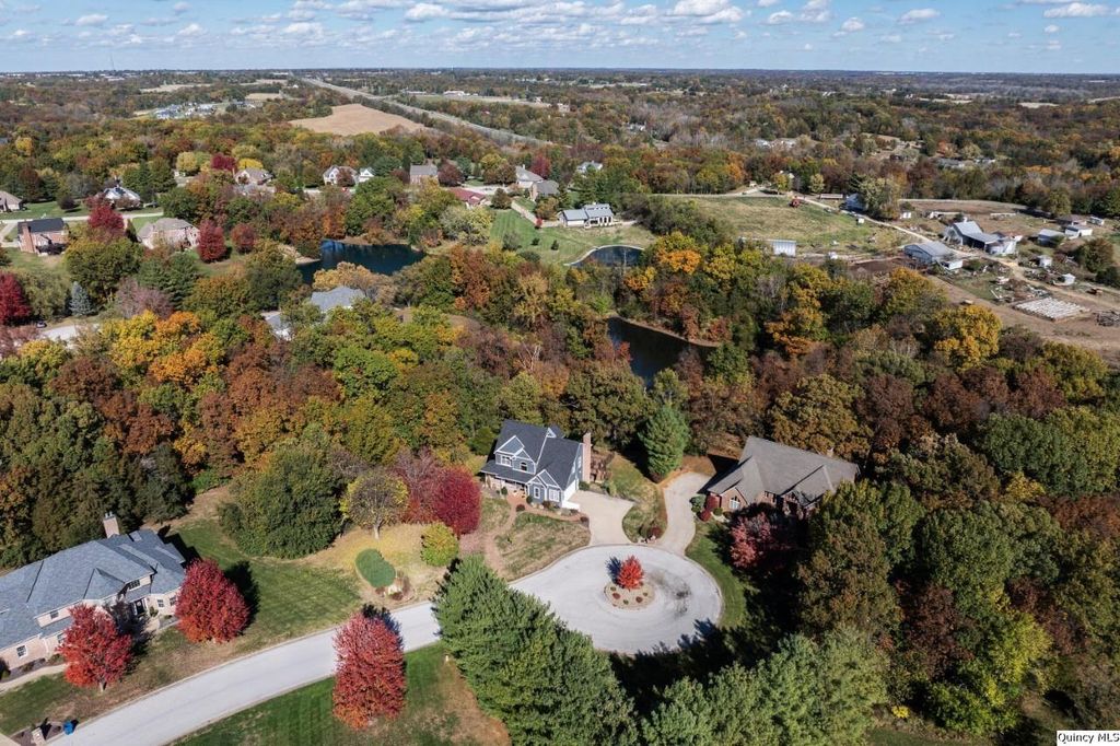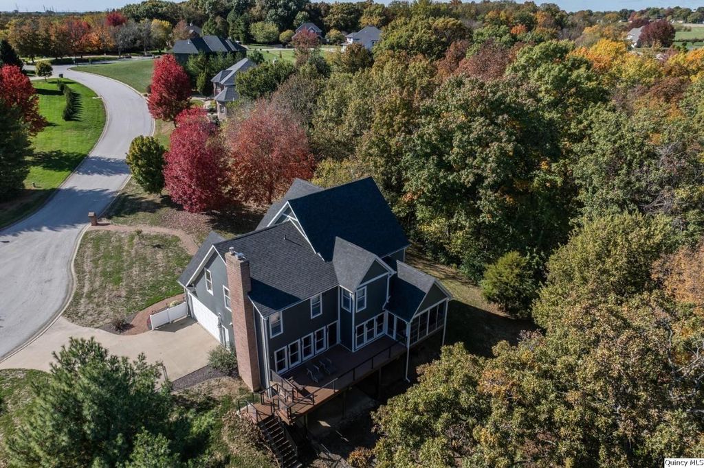 Land, Lake and Luxury!! This exquisite Timberline Subdivision estate is nestled at the end of a quiet cul-de-sac on 1.21 sprawling acres with secluded timber & lake access. Brick sidewalk welcomes you to a covered front porch. The 2-story foyer, complete with an open staircase sets a grand tone! The recently remodeled kitchen is a chef's dream with top-of-the-line appliances, including an undercounter microwave, built-in double oven, counter depth fridge & induction cooktop. Custom cabinets, quartzite countertops & 14ft. island with electrical pop-up outlets make this kitchen a true masterpiece! Enjoy the additional dining room w/bamboo & separate pantry, perfect for all your culinary needs. The four-season enclosed sunroom has heated floors & mini-split heating/cooling system. Upstairs, discover 4 spacious bedrooms, 2 full baths & convenient laundry room. The master bedroom has a wood fireplace, trey ceiling, walk-in closet & renovated master bath with heated floors, soaking tub and separate tiled shower with glass doors. Water hookups are available for a double sink in master bath & utility sink in laundry room. Walkout basement has bamboo flooring, family room, 5th bedroom, full bath, office & ample storage. Roof is 1 year old, furnace is 8 years & AC is 5 years. Exterior is Hardie Cement Board. Subject to sellers securing suitable housing., Utility Supplier: Adams Electric
