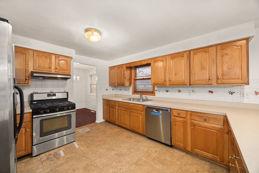 Brick ranch features 3 bedrooms, 2.5 bathrooms, living room, family room, eat in kitchen,