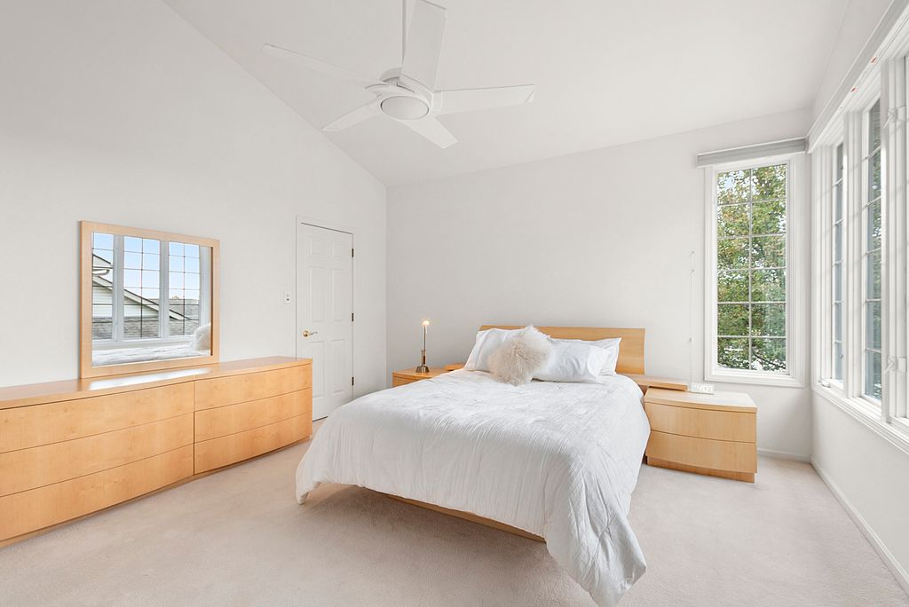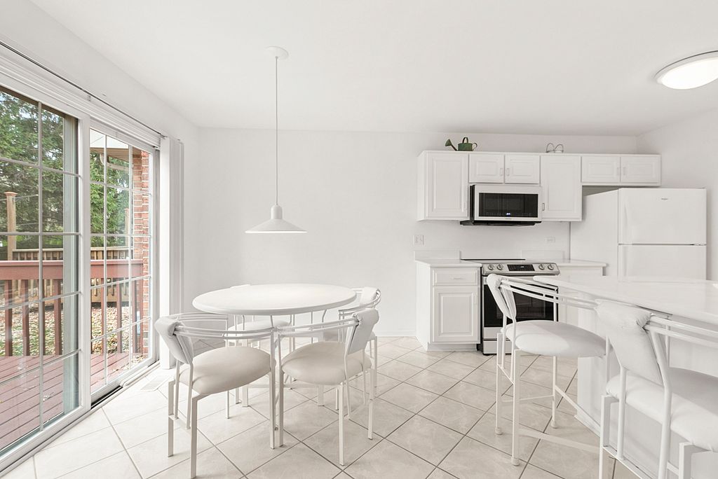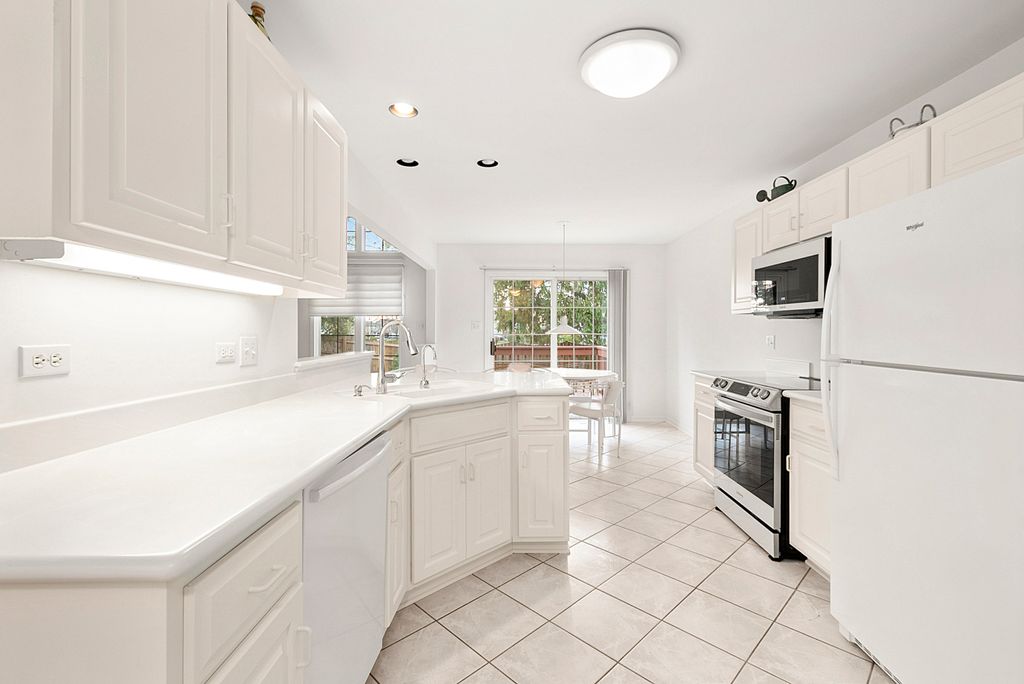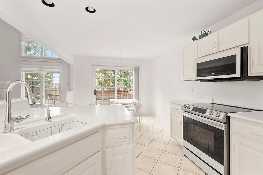 Welcome to this beautifully maintained townhome where abundant natural light, soaring ceilings, and thoughtful upgrades create a warm and inviting living experience from the moment you walk in. Enjoy the outdoor space on your very own deck and relax to the sounds of nature. Designed for comfort and style by the original owner, this home offers an open layout, quality finishes, and updates that make it truly move-in ready. Peace of mind comes from major mechanical updates, including a new furnace and AC installed in 2025. The impressive living room features dramatic two-story ceilings and expansive windows enhanced with premium Hunter Douglas custom blinds. A cozy gas fireplace anchors the space, while two brand-new skylights installed in 2025-each with remote-controlled blinds-fill the room with even more sunlight. The formal dining room continues the airy feel and also features Hunter Douglas blinds, offering both beauty and entertaining space. The spacious eat-in kitchen is designed for everyday convenience and gatherings, featuring porcelain tile flooring, corian counters, a breakfast bar, pantry, and updated appliances including a new refrigerator (2025) and Samsung stainless steel microwave and electric range (2024). A sliding door opens directly to the deck, creating a seamless indoor-outdoor flow for morning coffee, grilling, or relaxing. The main level also offers a well-appointed powder room and a convenient main-floor laundry room, adding to the home's functionality. Upstairs, the primary suite serves as a peaceful retreat with vaulted ceilings, newer blinds, and a large walk-in closet outfitted with custom built-ins. The private primary bathroom includes double sinks, a skylight, a whirlpool tub, and a separate shower-everything you need to unwind. The second bedroom also features vaulted ceilings and excellent natural light. A versatile loft overlooks the living room reading nook, or hobby area. The full unfinished basement offers endless possibilities-expand your living space, create a home gym, workshop, or simply enjoy the abundant storage. Located near the expressway and just minutes from charming downtown Tinley Park-with its dining, shopping, and METRA access-this home offers the perfect blend of convenience and comfort. Truly a must-see townhome that stands out with its natural light, thoughtful upgrades, and exceptional care.