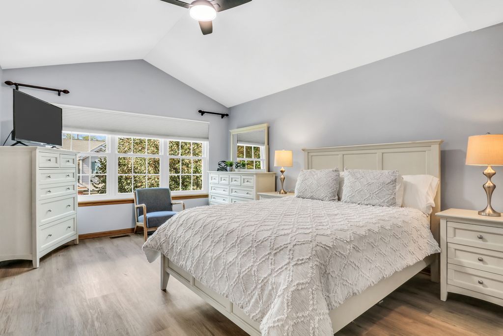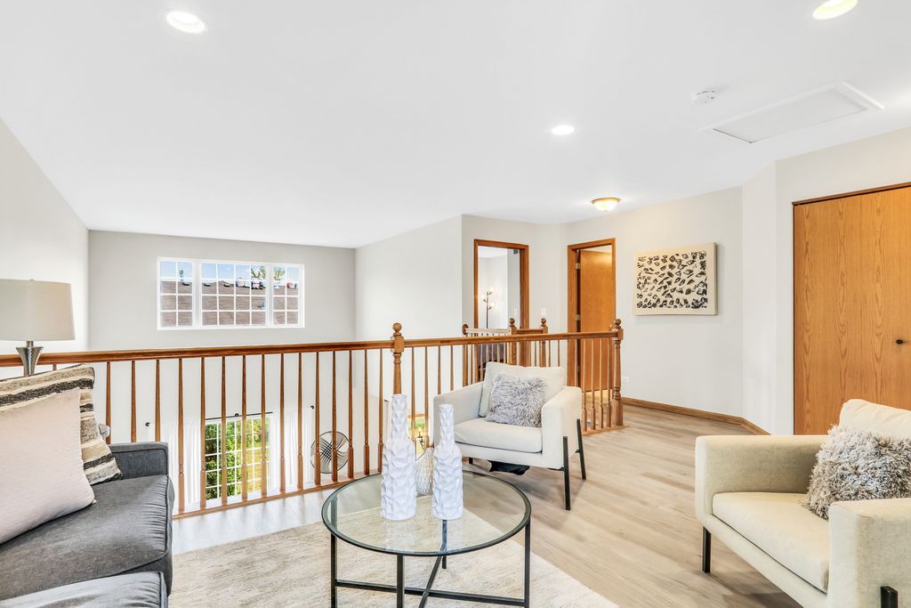 Welcome Home to this absolutely stunning residence in the highly sought-after Cobble Creek community! Perfectly situated in the heart of the neighborhood, this beautiful home offers incredible curb appeal, a spacious two-car garage, and a charming rear patio that's ideal for relaxing or entertaining. Step inside and prepare to fall in love. The inviting living room welcomes you with soaring volume ceilings, large windows that bathe the space in natural light, and a warm, open atmosphere that's perfect for both everyday living and entertaining guests. The adjacent dining area flows seamlessly to the back patio-ideal for enjoying an intimate dinner under the stars or hosting your next dinner party. The kitchen is truly the heart of the home! With loads of rich oak cabinetry, gleaming granite countertops, stainless steel appliances, and a center island with seating for two, this space is both functional and stylish-a dream for any home chef. A convenient main-level laundry/mud room and a perfectly placed half bath add to the thoughtful layout. Head upstairs to discover a spacious loft area that's ready to fit your lifestyle-use it as a cozy family room, a productive home office, or a fun playroom for the kids. The possibilities are endless! The primary suite is a true retreat, featuring volume ceilings, beautiful LVP flooring, and a luxurious en suite bathroom complete with a large vanity and a standalone shower. A second generously sized bedroom and another full bath complete the upper level. Need even more space? The finished basement has you covered! Enjoy a huge family room perfect for movie nights, game days, or gatherings, plus an area that's ideal for your home gym or hobby space. From top to bottom, this home has it all-style, comfort, and space in one of the area's most desirable communities. Don't miss your chance to make this Cobble Creek gem your new home!