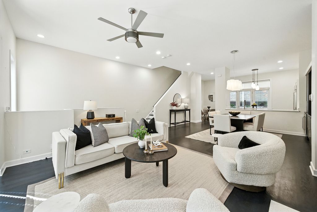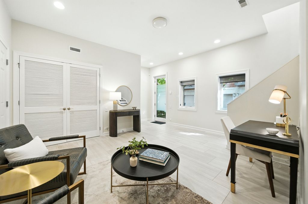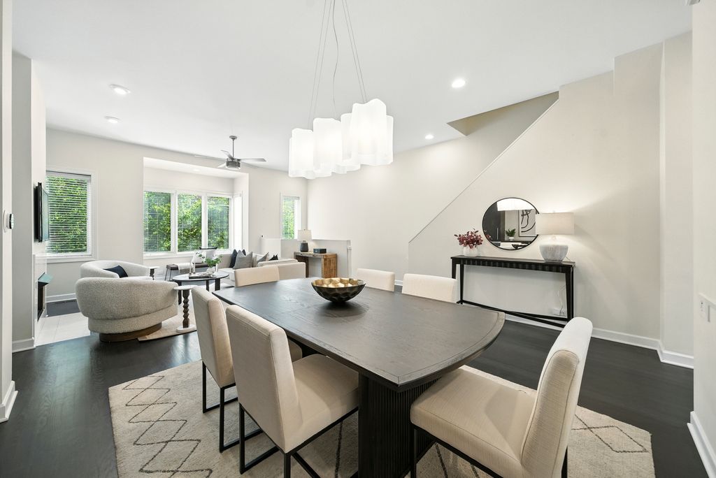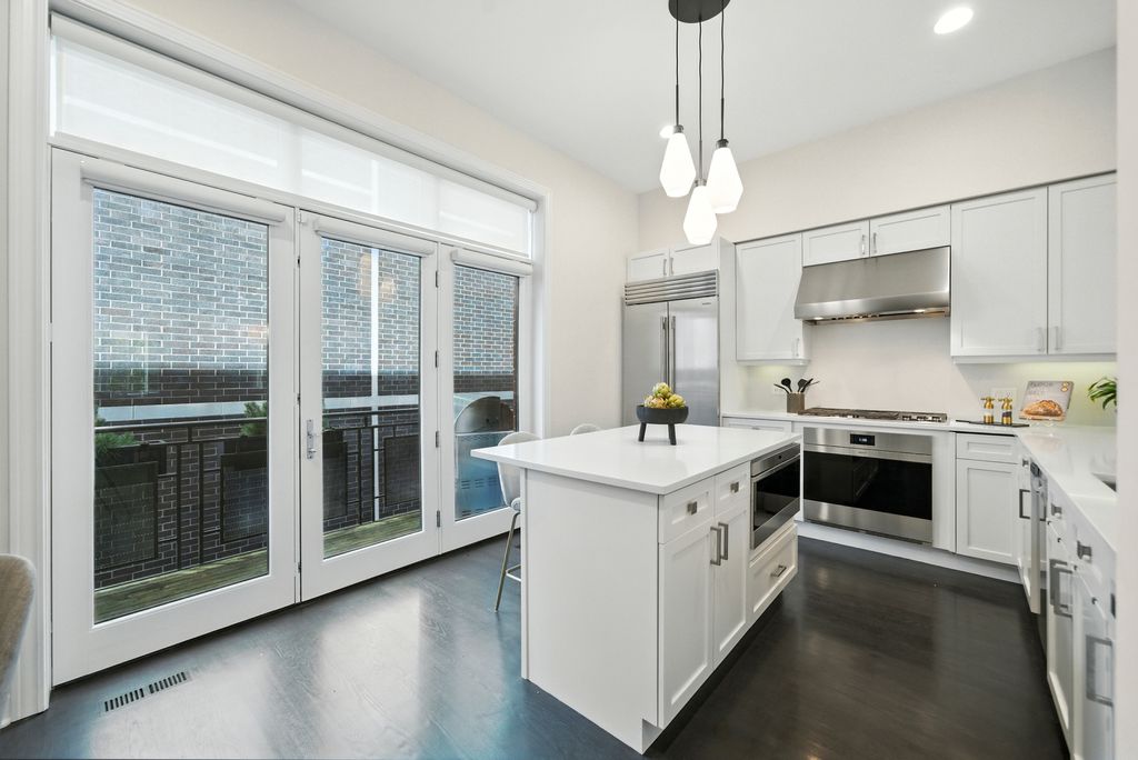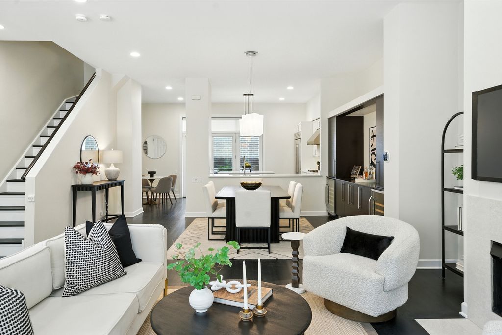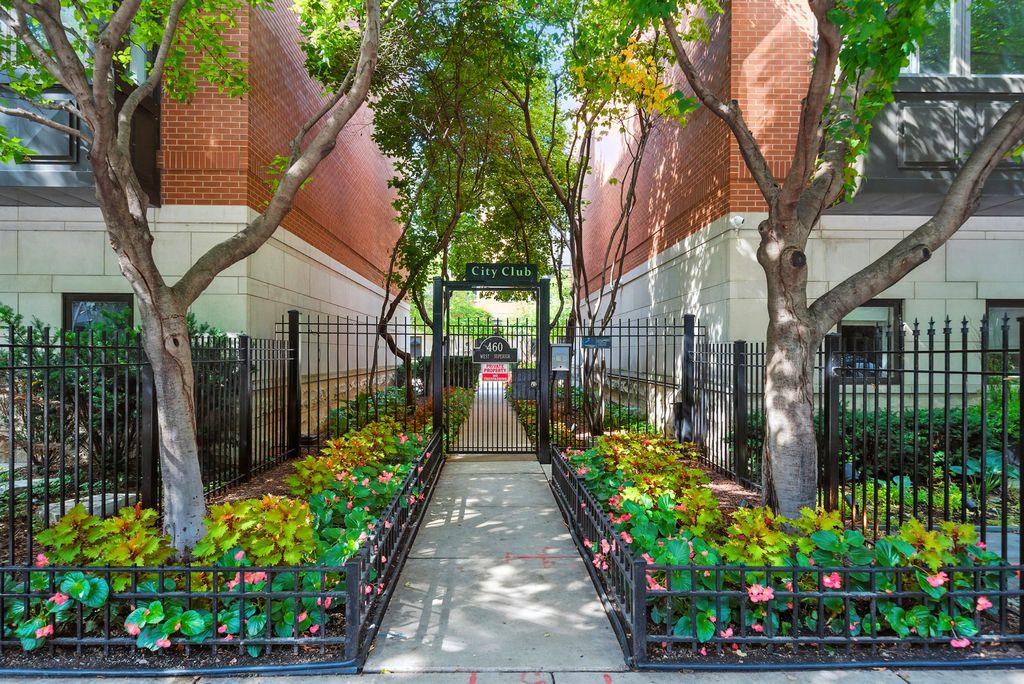 Stunning, sophisticated 3 bedroom plus den, 3 bathroom River North townhome in the coveted City Club gated community! This home is spacious, has a wonderful floor plan and lives like a single family home tucked away in the middle of River North! Thoughtfully updated and light-filled, this 4 level unit boasts stunning hardwood floors and 10 foot ceilings throughout. The ideal open floor plan is an entertainer's dream featuring a beautifully updated kitchen with 42" cabinetry, white quartz counters and backsplash, updated Subzero and Wolf stainless steel appliances, gracious island with breakfast bar, adjacent breakfast nook, walk-in pantry and generous sized balcony perfect for grilling with a Coyote gas grill installed and ready to go! Kitchen opens to a large dining space with built-in buffet and bright living room with gas fireplace, overlooking the tree-lined courtyard. The third level has a stunning king-sized primary suite with bay window, elegant custom walk-in closet, and grand en-suite bath with new quartz counter dual vanity, whirlpool bath, and oversized shower. Spacious second bedroom with custom closet and second full bath with quartz counter vanity complete this floor. The top level includes an enormous third bedroom with a giant walk-in closet, easily adaptable to a bedroom + den, along with a third full bath. Gorgeous rooftop terrace with spectacular city views! Lower level makes a perfect office/den/fitness room, with tiled flooring. 2 car attached garage, in-unit w/d and abundant storage throughout. All high-end modern appliances - Subzero/Wolf/Miele in the Kitchen, wine fridges, Samsung washer and dryer. Modern mechanicals, two AC units two Furnaces with smart thermostats. Light switches SmartHome capable. Steps from East Bank Club, Starbucks, Chicago CTA stop, Whole Foods, restaurants, shopping, and everything River North has to offer!