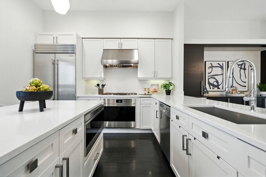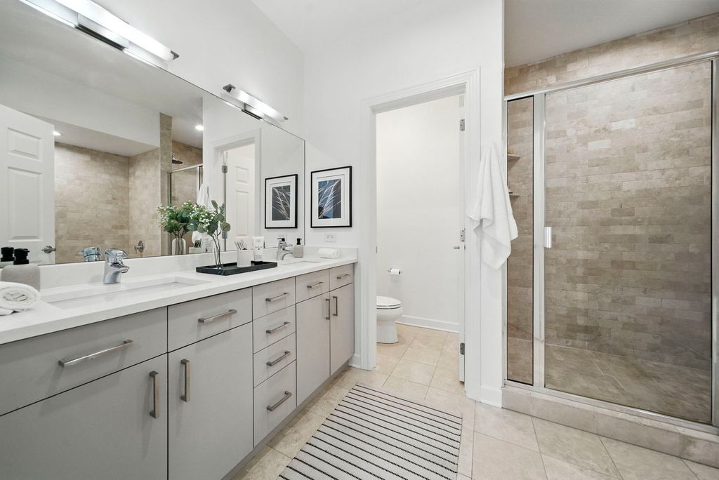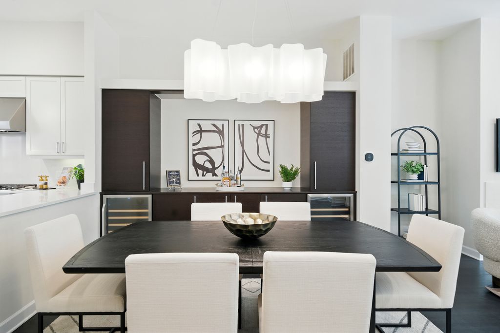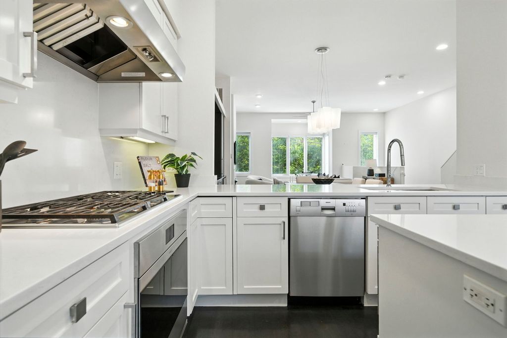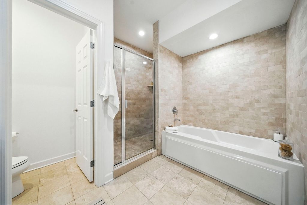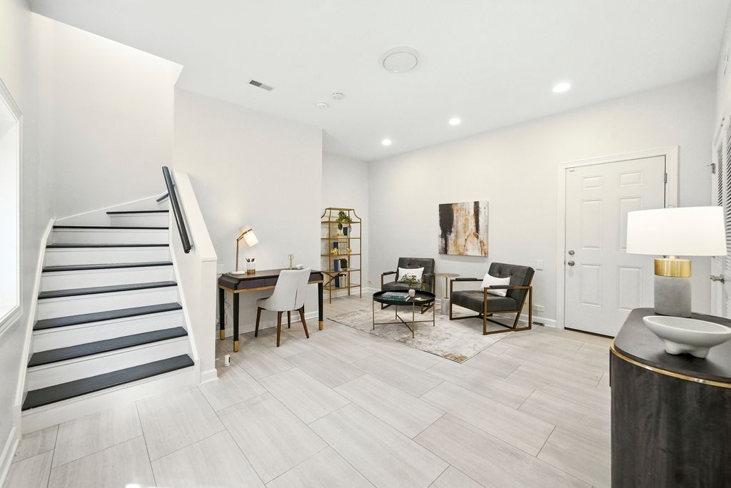 Stunning, sophisticated 3 bedroom plus den, 3 bathroom River North townhome in the coveted City Club gated community! This home is spacious, has a wonderful floor plan and lives like a single family home tucked away in the middle of River North! Thoughtfully updated and light-filled, this 4 level unit boasts stunning hardwood floors and 10 foot ceilings throughout. The ideal open floor plan is an entertainer's dream featuring a beautifully updated kitchen with 42" cabinetry, white quartz counters and backsplash, updated Subzero and Wolf stainless steel appliances, gracious island with breakfast bar, adjacent breakfast nook, walk-in pantry and generous sized balcony perfect for grilling with a Coyote gas grill installed and ready to go! Kitchen opens to a large dining space with built-in buffet and bright living room with gas fireplace, overlooking the tree-lined courtyard. The third level has a stunning king-sized primary suite with bay window, elegant custom walk-in closet, and grand en-suite bath with new quartz counter dual vanity, whirlpool bath, and oversized shower. Spacious second bedroom with custom closet and second full bath with quartz counter vanity complete this floor. The top level includes an enormous third bedroom with a giant walk-in closet, easily adaptable to a bedroom + den, along with a third full bath. Gorgeous rooftop terrace with spectacular city views! Lower level makes a perfect office/den/fitness room, with tiled flooring. 2 car attached garage, in-unit w/d and abundant storage throughout. All high-end modern appliances - Subzero/Wolf/Miele in the Kitchen, wine fridges, Samsung washer and dryer. Modern mechanicals, two AC units two Furnaces with smart thermostats. Light switches SmartHome capable. Steps from East Bank Club, Starbucks, Chicago CTA stop, Whole Foods, restaurants, shopping, and everything River North has to offer!