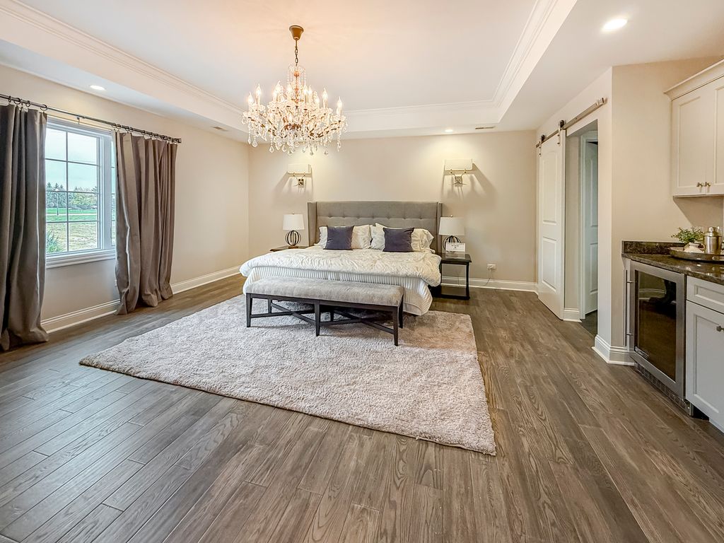 Meet your next luxury home in Frankfort, IL! This stunning property offers 5 full bedrooms and 5 full bathrooms across 3 levels of beautifully finished living space. The grand foyer welcomes you with full hardwood floors throughout. The living room features soaring 25-foot ceilings and a cozy fireplace. The open-concept kitchen includes 42" shaker cabinets, quartz countertops with matching backsplash, and Bosch stainless steel appliances. The first floor offers a formal living room, dining room, den, breakfast area, and an additional bonus room-perfect for guests or a lounge. The second floor showcases new hardwood flooring with 4 spacious bedrooms, including two en-suite rooms. The primary suite features a built-in bar area, a luxurious spa-style bathroom with marble-top vanities, a standalone tub, enclosed toilet, and a generous walk-in closet. The finished basement is designed for entertainment, complete with a wet bar, glass wine room, fitness room, and a stone electric fireplace in the theater area. Step outside to your private oasis featuring a heated in-ground pool with a cascading waterfall, custom stone paver patio, outdoor bar, and a fully enclosed iron fence with brick pillars. A children's playset and a full water sprinkler system installed in the front and back of the home complete this impressive backyard retreat. Better than new construction-this home offers high-end upgrades and thoughtful details throughout. Conveniently located near retail and dining along LaGrange Road and part of the highly rated Frankfort School District 157C and Lincoln-Way East High School District 210.