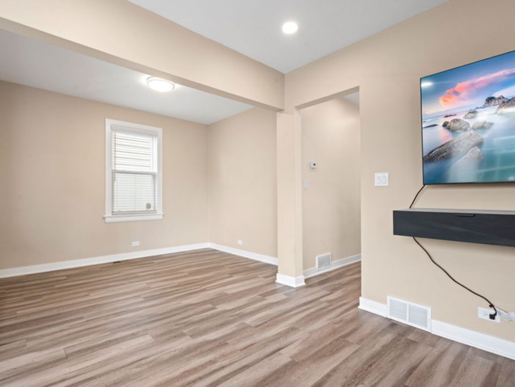Short Sale Opportunity - Sold As Is. Beautifully renovated 3-bedroom, 2-bath home (updated 2023) offering exceptional value. Features include wide-plank flooring, designer lighting, new trim, and custom interior doors. The gourmet kitchen showcases quartz countertops, waterfall island, custom cabinetry, and black stainless-steel appliances. Open-concept living and dining area leads to a covered deck and fenced yard. Main-level bedroom with adjacent full bath-ideal for guests or office. Second level offers two bedrooms, including a spacious primary suite with generous closets and a spa-style bath. Full basement with laundry and rough-in for future bath offers great expansion potential. Additional highlights include a new staircase, updated walkway, and newer 2-car garage with 8-ft door. Property is being sold As Is. Short sale - lender approval required.