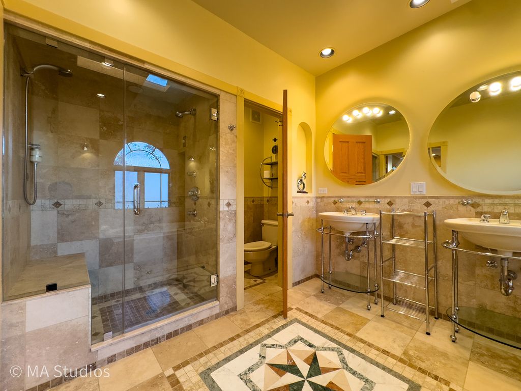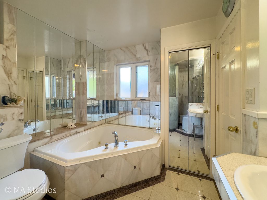 Experience elevated living in this meticulously rebuilt Morton Grove sanctuary, where timeless design meets modern comfort. Originally built in 1955, the home was fully rebuilt from the ground up in 2005-the only original elements are the basement and foundation-making the structure effectively just 20 years old. Nestled on a quiet residential street minutes from golf courses, forest preserves, equestrian trails, bike paths, walking trails, tennis courts, and Harrer Pool & Park, this expansive 5-bedroom, 4-bath home offers over 3,500 square feet of finished space with full floor plans included. Inside, enjoy a bright, open interior with gleaming hardwood floors, vaulted ceilings, and custom recessed lighting. The spacious chef's kitchen features granite countertops, stainless steel appliances, a granite breakfast table, and a pantry closet with a second full-size refrigerator. The home offers exceptional flexibility with two primary suites-one on the main level with sliding doors to the deck, hot tub, and backyard, and another upstairs with heated flooring, a whirlpool tub, steam shower, and double vanity sinks. The unfinished attic is already prepped with electrical and conduit and can add approximately 400 additional square feet once finished, bringing total livable space to over 4,000 square feet. Additional highlights include a new roof installed last year, two independent HVAC systems, large walk-in closets, gutter guards, a two-car detached garage, two spacious decks, a brick paver driveway, a 4-person hot tub, and an oversized backyard. Located in the highly rated Niles West High School district with easy access to Metra, I-94, and local amenities, this home offers suburban tranquility with unbeatable convenience. And don't forget to check out the 3d virtual reality tour - if you don't see it on your current platform, try viewing the listing on another major real estate site to access the immersive 3d VR tour and floorplan shots. Property is being sold as-is with 1 year American Home Shield home warranty provided by sellers.