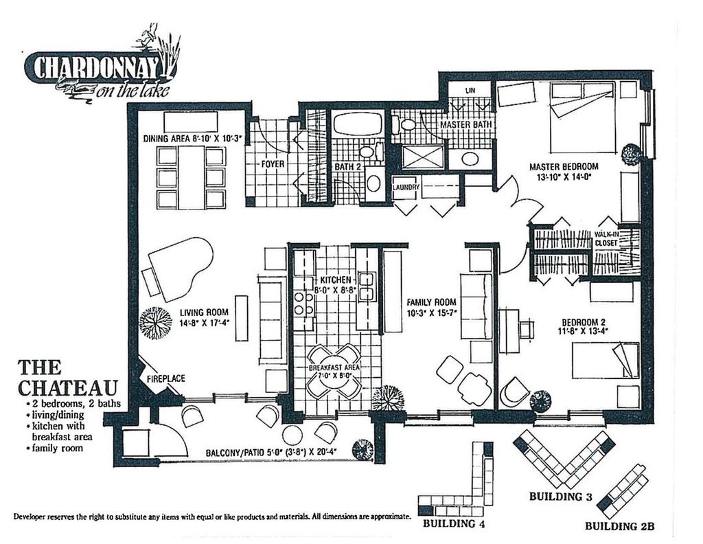 Rarely Available 2 bedroom, 2 bath + FAMILY ROOM unit is super spacious and ready for you! This fantastic corner unit features huge living room/dining room combination with a cozy fireplace. The kitchen features all appliances, sliding glass doors that open to a large balcony, a breakfast area, and connects to a versatile family room that can easily be used as a third bedroom or den. Spacious primary bedroom with en suite and walk-in closet. Full-sized laundry in the unit. The 20 x 5-foot balcony can be accessed from either the living room or kitchen area and offers ample space to relax. Furnace replaced in 2018. This is one of the largest floor plans in beautiful Chardonnay on the Lake! Heated underground parking is conveniently accessible from the elevator. Association covers water, pool, clubhouse, lake rights, parking, exterior maintenance, elevators, snow removal, and lawn care. Chardonnay on the Lake is walking distance to shopping, the library, fitness center, hospital, and the forest preserve. Convenient to expressways and train. Welcome home!