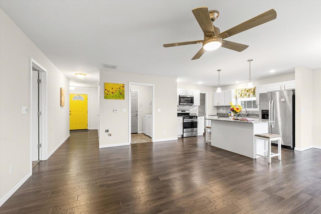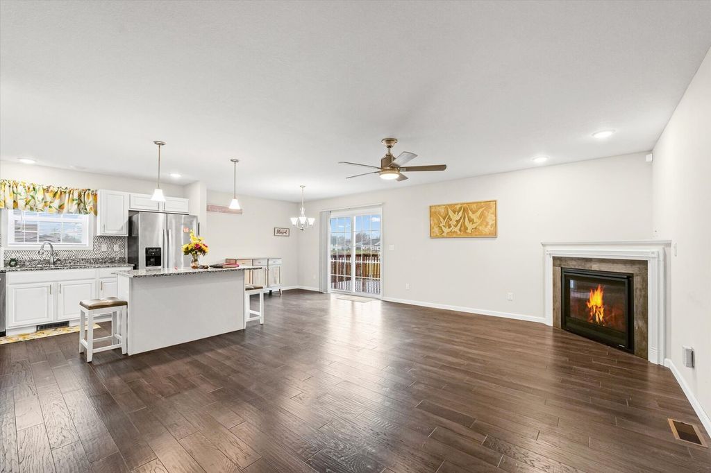 Welcome to your like-new, custom built home, providing you with an open concept floor plan, with waterfront views from inside and outside of the home, that is sitting on a private, spacious, fenced in yard, all providing you with the wow factors you have been looking for in your new home! As soon as you enter, you will know this is the one. Inside you will find gleaming wood floors, an ornate, corner placed fireplace, providing you a plethora of layout possibilities, along with the warmth and ambiance, without the hassle of a wood burning fireplace! The spacious adjoining kitchen and dining room, offers up an efficient layout with granite countertops, beautiful backsplash, stainless steel appliances, island, with additional storage/seating, a walk-in pantry, with access to the spacious deck, are all perfect for entertaining guests and loved ones. The split bedroom layout gives you two large bedrooms with a full bath on one side of the home, with your own private bedroom suite, providing you privacy with convenience and comfort. This home has it all, so schedule your tour today, to preview this beautiful property that is ready for YOU to call "HOME"! 🙂