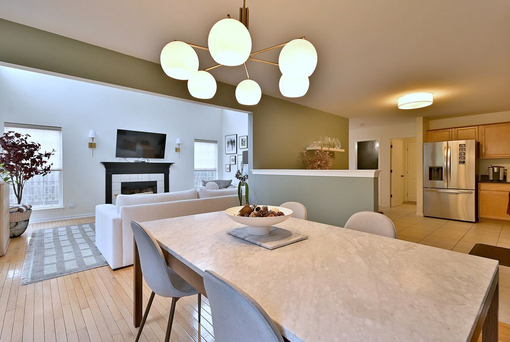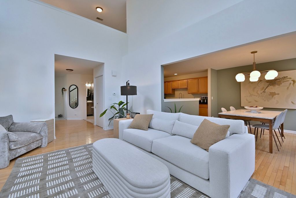 Move-In Ready beautiful and spacious 2 bedroom, 2.5 bath End-unit townhome featuring a full basement. The large eat-in kitchen offers granite countertops and stainless steel appliances and opens to the dining room. The bright 2-story living room boasts skylights, oak flooring, and a cozy gas/wood-burning fireplace and door to back patio. The main level also includes a mudroom and an updated half bath. Upstairs, the primary suite features a walk-in closet and a full bath with an oversized shower. The 2nd floor also includes a second bedroom, full hall bath, and a loft area perfect for a desk or reading nook. Freshly painted with new carpeting, new light fixtures, and custom window shades. Water heater 2022, Roof. 2021, HVAC 2007 and a 1-year home warranty included. The full, dry basement is ready for your finishing ideas. Fantastic location with convenient access to expressways, top-rated schools, walking and bike trails & parks. Metra station and the popular Seven Bridges area offering entertainment, shopping, and dining options-plus you're minutes from downtown Naperville & Lisle. Rentals are allowed, there is a rental cap of 20% Make your appointment today!