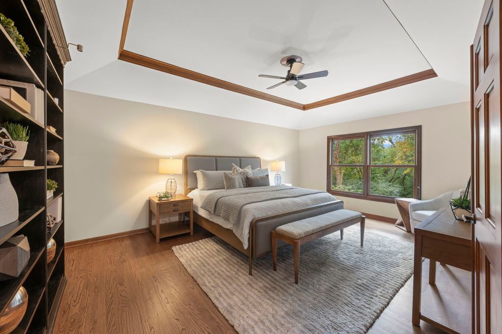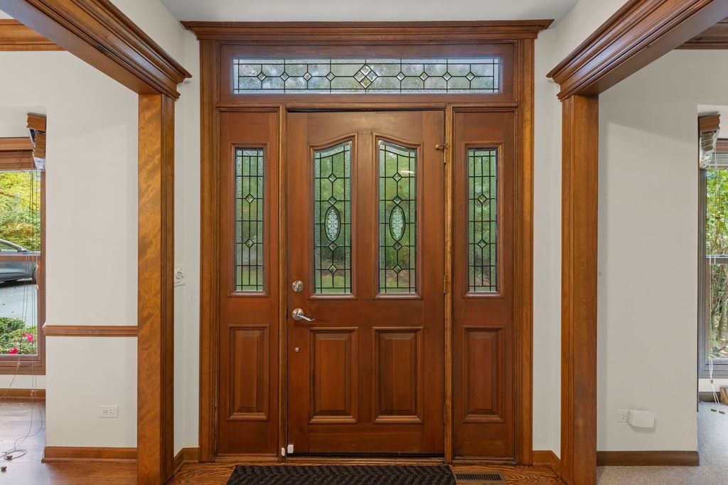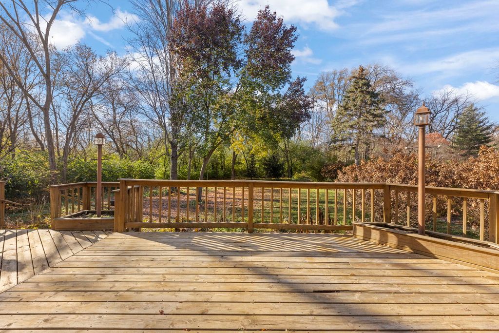 Stunning Retreat on Madison Street! Nestled on an exclusive wooded lot, this captivating four-bedroom, three-and-a-half-bath home offers unmatched privacy and serenity. Backing directly to the the Prairie Path and beautiful St. James Farm, this 0.91 acre property provides peaceful ambiance with lushly wooded views from every window! Beautiful bay windows highlight the landscaping in both the Living Room and Dining Room. Gorgeous Family Room with stunning fireplace and built-ins opens to light-filled kitchen, thanks to the skylights and massive sliding doors to deck. Newly refinished hardwood floors and brand new carpeting add to the warmth of this very special home. Head upstairs to the newly refreshed Primary Suite, plus 3 additional bedrooms, full bath, and laundry room. Finished basement with full bath adds to the livability! Nearby horse properties highlight the charm and the rural elegance of the area, perfect for those seeking a blend of privacy and nature.