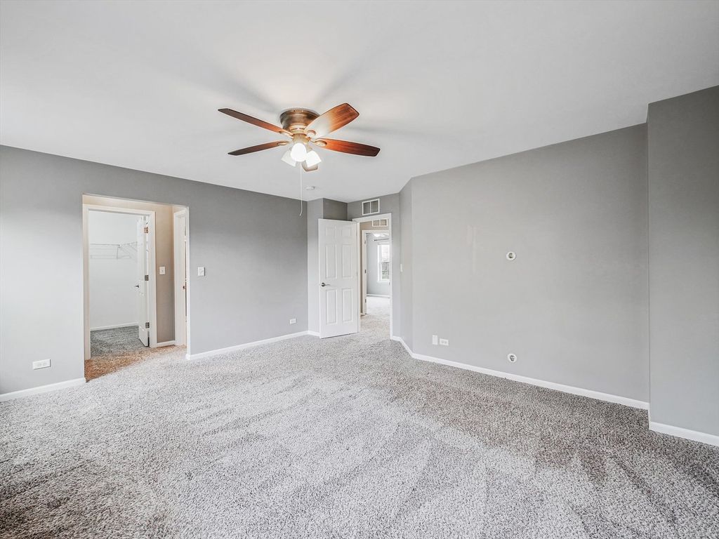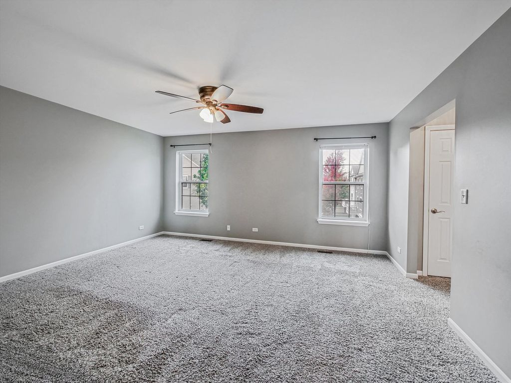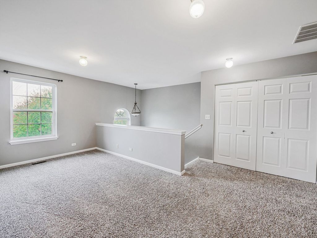 Spacious 3-bedroom, 3.5-bath, 3-level townhome offering over 2,300 sq. ft. of living space. This end-unit is ideally positioned facing the pond, providing beautiful year-round views. Bright main level features 9' ceilings, large living room, an updated kitchen, and dining area with access to one of two balconies. The upper level includes a generous primary suite with private bath, a secondary bedroom, and a versatile loft. The finished lower level adds a 3rd bedroom with en-suite full bath - perfect for guests or related living. Attached 2-car garage. Enjoy unbeatable convenience just minutes to Costco, Stratford Square, parks, bike trails, and the Village Recreation Center. Easy access to I-355. Walk to Fountains Park District, fitness center, and nearby dining. Truly move-in ready - schedule your showing today!