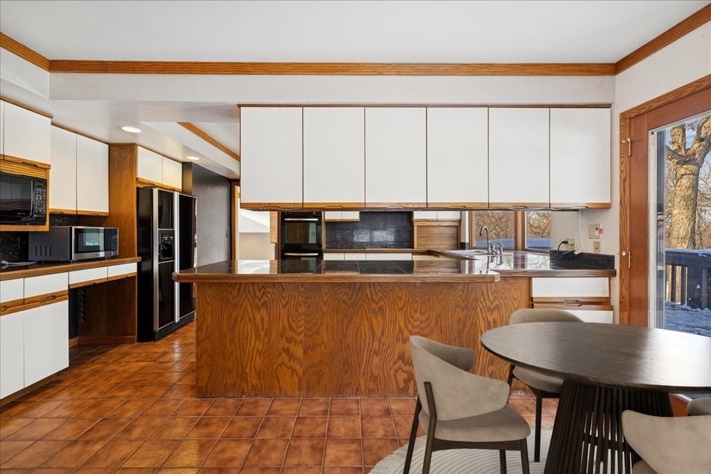 Custom Home in Elburn - Private Cul-de-Sac and surrounded by Nature. Welcome to this exceptional custom-built home nestled on a private drive in the desirable Oak Openings subdivision. This wooded lot offers unmatched privacy-perfect for enjoying tranquil views of trees, nature, and visiting wildlife.Inside, you'll find beautiful solid walnut and oak flooring with intricate inlays and custom millwork throughout. An open two-sided fireplace connects the family room and dining room, creating warm, inviting spaces. The dining room includes inlaid floors, custom lighting, and a wall of sliding glass doors overlooking the expansive wooded backyard.The spacious kitchen features abundant cabinetry, a breakfast bar, and a separate eating area. Amenities include double ovens, granite countertops and backsplash, GE range, KitchenAid dishwasher and refrigerator, and a GE microwave/convection oven. A convenient walk-in pantry and a large bay window over the sink complete this functional space. The family room includes custom built-ins and access to the back deck. Additional living space features soaring ceilings, wood/gas fireplace, updated windows, hardwood floors, and direct access to the backyard patio-ideal for entertaining. A custom staircase with detailed millwork leads to the second floor, where natural light fills the open loft-style landing. Hardwood floors continue throughout. The spacious primary suite offers a sitting area, excellent storage, custom closet organizers, and a cedar built-in hope chest for a charming reading nook. The primary bath includes a large Jacuzzi tub, separate shower, double sinks, and vanity, enhanced by multiple skylights. Two additional sized bedrooms include custom shelving and closet organizers. The updated full guest bath features granite counters and a thoughtful layout separating the sink from the water closet/tub-shower. The full finished basement provides outstanding space for recreation-perfect for a pool table, ping pong, media area, or entertaining. Features include: * Custom wet bar with fridge, seating for three & display cabinetry * Full bathroom * Guest bedroom-ideal for visitors or an in-law arrangement * Full log fireplace * Large storage areas including a huge crawl space * Two-zone furnaces and A/C * 75-gallon water heater * Whole-house water filtration & softener system * Central vac system * Large freezer included * Upgraded Pella windows throughout A 2.5-car garage and spacious driveway offer ample parking. Two large attic spaces provide even more storage. This estate sale is being sold AS IS and includes a home warranty for buyer peace of mind. Bring your vision and make this private wooded retreat your own. A rare opportunity-homes like this do not come on the market often!