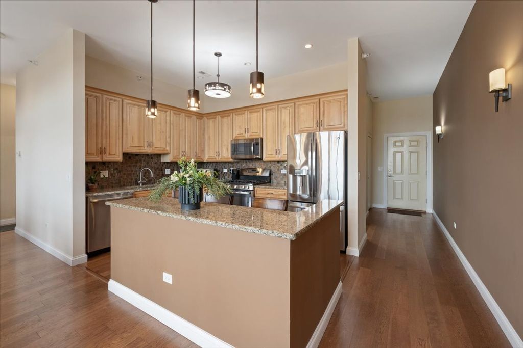 Experience elevated top-floor living in this bright and airy corner 2 bed, 2 bath home featuring soaring ceiling heights, dramatic windows, and sweeping city views from your primary suite. Designed for comfort and easy living, this spacious residence offers an impressive primary suite with a generous walk-in closet and a spa-like ensuite with dual-sized countertops, a separate shower, and a soaking tub. The second bedroom functions beautifully as a guest room, office, or den. Additional highlights include a true laundry room, an oversized eat-in kitchen with abundant cabinetry, and a large open-concept living and dining area perfect for entertaining. Enjoy grilling and fresh air from your balcony. Located in an elevator building with attached garage parking and unbeatable walkability to everything the neighborhood offers.