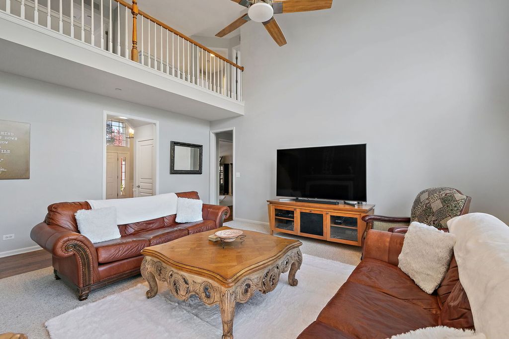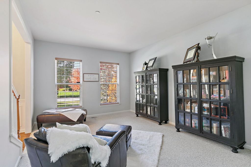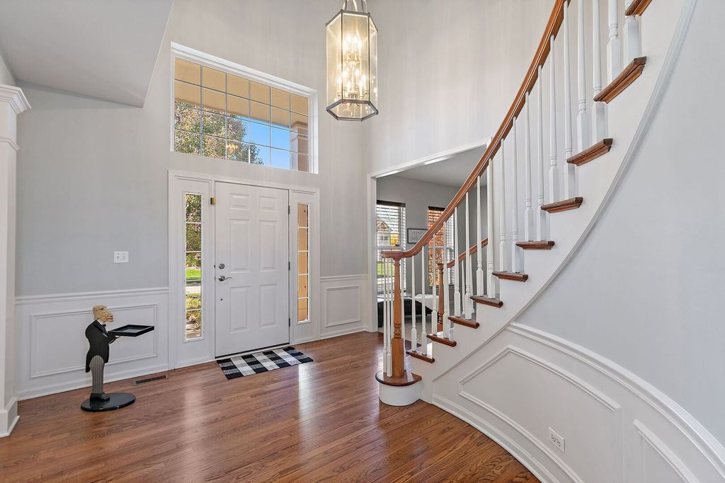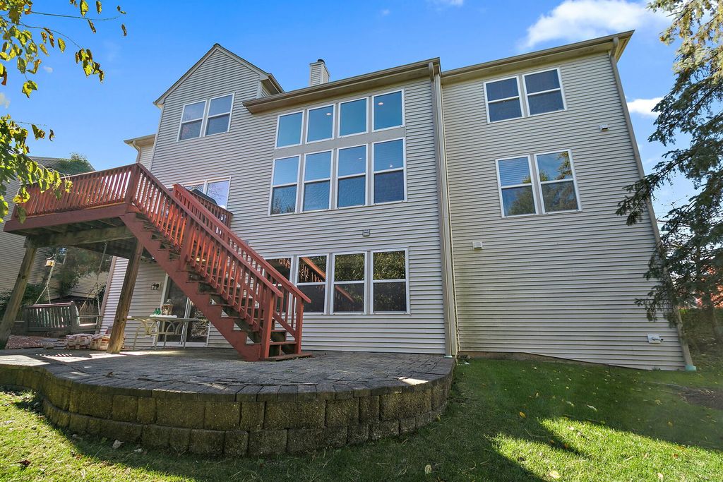 Exclusive and unique Prescott model, the largest model at prestigious Carrington Reserve. Great curb appeal w/brick front & 3 car side load garage. This amazing and rare floor plan offers a 2 story foyer & family room with soaring ceilings and oversized windows that invite the outside in, a split stairway offers access from the foyer & kitchen. Interior professionally painted in neutral colors! granite counters, stainless steel kitchen appliances, washer & dryer stay, laundry tub, upgrades galore, plus custom lighting fixtures. Beautiful entry with curved stairway, formal living & dining room. The amazing oversized kitchen offers a large island, a pantry, a planning desk, a large eating area with a slider to a beautiful deck and a brick patio area. Enjoy the fire pit on beautiful fall nights. The spacious master bedroom offers a luxury bathroom with 2 vanities, 2 separate walk-in closets, a large soaker tub & separate shower. All secondary bedrooms are spacious! Full walk-out basement with 10' ceilings is finished for extra space for your growing family with 3 separate storage areas and a large recreational area, plus a media/TV area. So much room for future expansion in this one-of-a-kind home awaits for your family and will not last! Extra bonus: The roof was replaced in 2020, and the floors were refinished in 2021! Major renovations 2020/2021