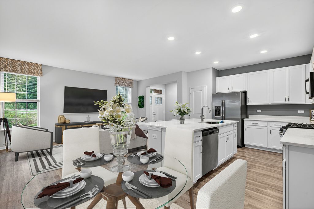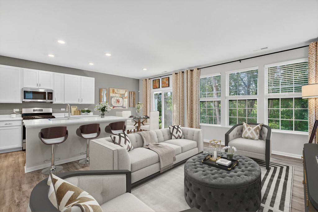 Gorgeous end-unit builders model Darcy sits on the premier homesite in Legend Lakes, offering peaceful nature views and abundant natural light. Inside, enjoy an open-concept layout with a stylish center island kitchen featuring quartz countertops, 42" cabinets, GE stainless steel appliances, and a built-in pantry. The great room and dining area flow seamlessly for easy living and entertaining. Upstairs you'll find spacious bedrooms plus a versatile loft, while the primary suite boasts a huge walk-in closet and spa-like bath with quartz vanity and walk-in shower. With designer finishes, Smart Home technology, 9' ceilings, Shaw flooring, and an in-ground sprinkler system this home truly has it all. Legend Lakes offers parks, paths, ponds, and sports fields-all just minutes from McHenry's dining, shopping, and outdoor recreation.