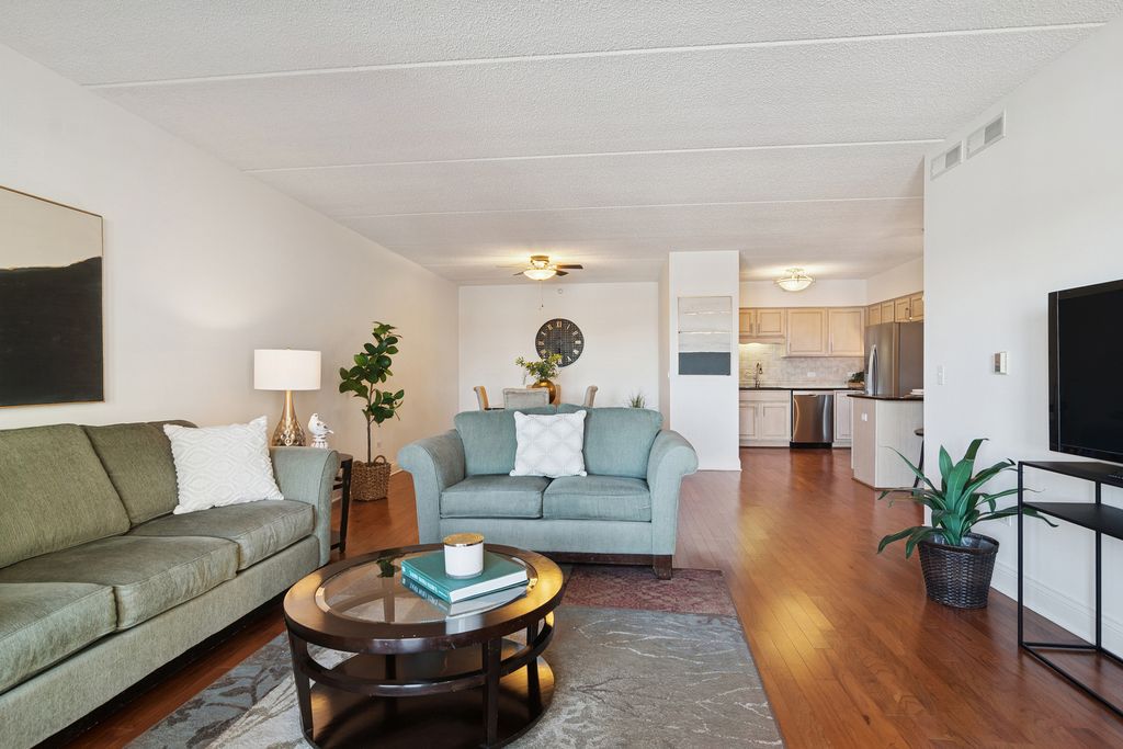MULTIPLE OFFERS RECEIVED. HIGHEST & BEST OFFERS ARE CALLED FOR BY 5p.m., SATURDAY, JAN. 31. YOU WILL LOVE THE LIFESTYLE this beautiful and rare 2-bedroom/2-bathroom Campbell Courte condominium brings. Enjoy upscale amenities in this walk-to-everything home in the HEART OF DOWNTOWN Arlington Heights. You'll be steps from restaurants, coffee & specialty shops, the Metra train, the summer al-fresco scene, local live entertainment, & so much more. This 7th floor unit is open and airy with oversized windows offering Northern exposures and a large balcony. The living/dining area flows perfectly from the kitchen, working well for everyday living or entertaining guests and has plenty of room to accommodate your larger furniture. The kitchen features an island for casual eating, serving, scrolling your computer, or conversation with guests perched on their stools. The generously sized primary bedroom has a private ensuite bathroom and a walk-in closet. The second bedroom works well for guests, office, exercise room, or any combination that fits your needs. There is a second full bathroom that can be utilized by guests. The unit is neutral, freshly painted in on trend colors, and has newer wood flooring through the main living space and bedroom. The upscale lobby makes a wonderful first impression on your visitors and offers space to gather with friends to chat or watch the downtown activity. You'll find convenient in-unit laundry, same floor storage cage, an Amazon drop off area in the lobby, interior access to your garage space, and more! Assessment of $725.94 covers heat, water, gas, garbage, basic cable & internet. Nice building with thoughtful details-as example there is radiant heat about a foot out from the sliders and bedroom windows to combat coldness from the concrete. Owner pays for their own electricity. Move in and enjoy exciting downtown Arlington Heights!