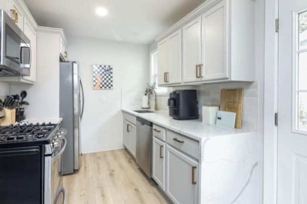 This beautiful updated 3 bed 2 bath ranch is located in the heart of Carol Stream. Spacious living room with luxury flooring throughout. The kitchen and dining combo is equipped with a corner coffee bar, modern quartz countertop with waterfall feature, chic backsplash, and stainless appliances. 3 bedrooms, the primary bedroom is equipped with a master bathroom with modern finishes. 2nd full bathroom includes same stunning finishes. The yard is fully fenced and perfect for entertaining. This property is conveniently located within minutes of Glenbard North highschool and I-355. Nothing to do but move in! New windows, roof, gutters, water heater in 2023. Everything new in 2023. New furnace and washer/dryer. Just check out these pictures!!