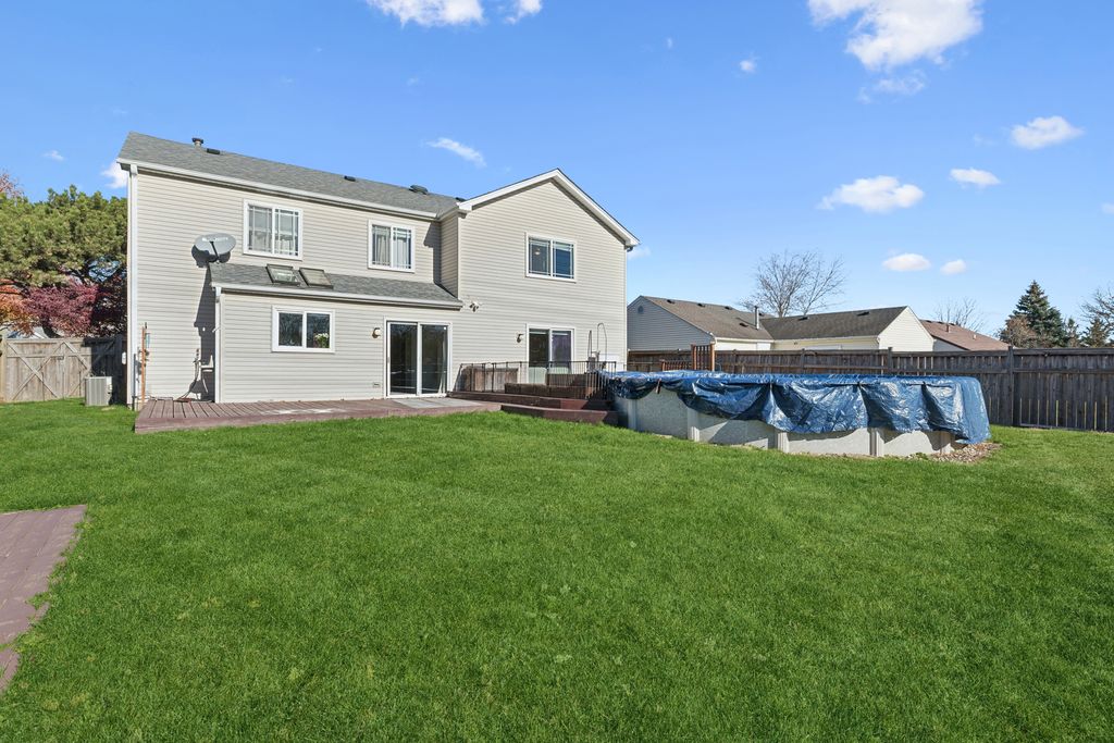 Gorgeous and Remodeled, Move In Ready, 4 Bedroom Plus Loft, 2.1 Bath Contemporary in Pembrook Subdivision. If you are looking for the perfect residence for entertaining....This is your dream home! Enter the light and bright two story entry way which features stunning sky lights, soaring ceilings, a beautiful wood staircase, and a large hallway closet. Be prepared to fall in love with the spectacular, huge LV/DR combination which is the perfect place for entertaining or relaxing! Fabulous Gourmet kitchen boasts white cabinetry, sparkling granite countertops, a full compliment of S.S. appliances, recessed lighting, center island w/wine cooler, beautiful sliders and a huge breakfast area. Cozy up to the large family room that showcases a gorgeous stone wood burning fireplace, recessed lighting, and sliders overlooking a fabulous 20' outdoor pool, deck, and luscious greenery! Wonderful first floor laundry area offers a full size washer and dryer and tons of cabinetry. Upstairs, the huge loft area is the perfect getaway for a home office or den. Glamorous primary bedroom features a beautiful double door entry, a private ensuite, sitting area, and a spacious walk in closet. Three additional bedrooms with tons of closet space, and a large hallway complete this amazing residence! Additional Amenities include a 2 car garage with tons of storage, large shed, attic with floor. and a fully fenced yard. Located close to Gurnee Mills Mall, restaurants, shopping transportation, parks, and entertainment. Make this your Dream Home Today!